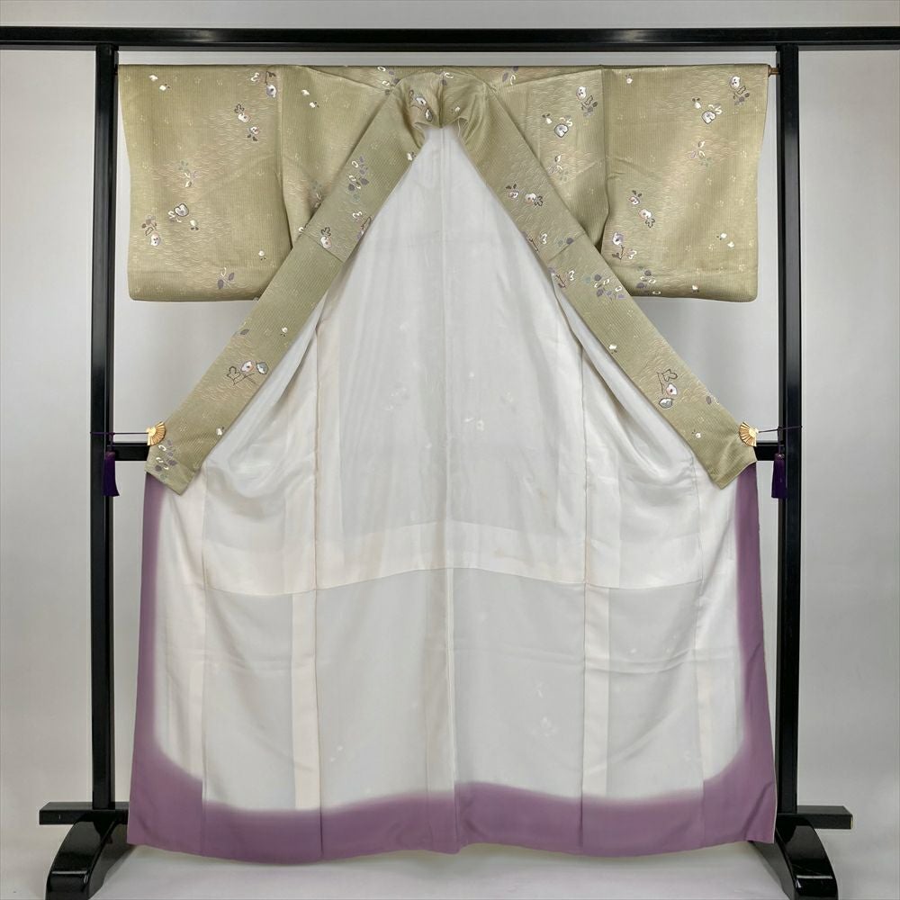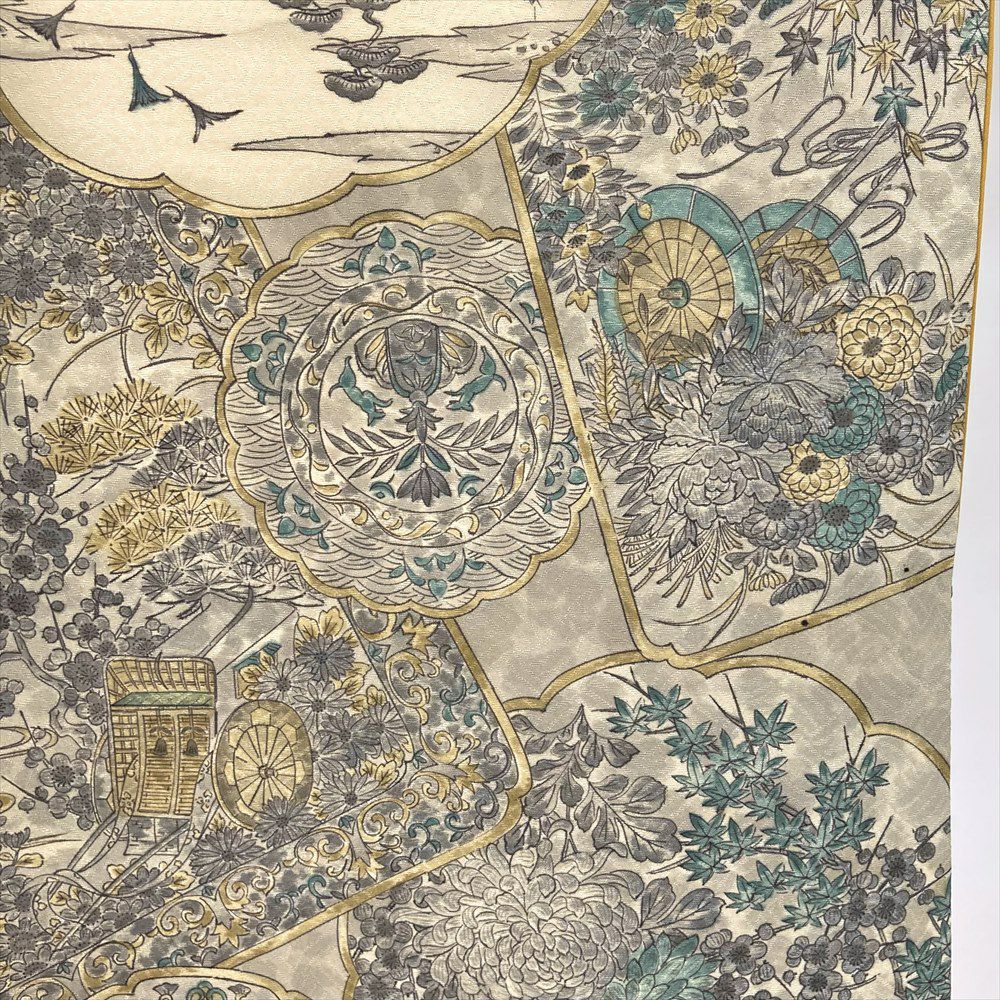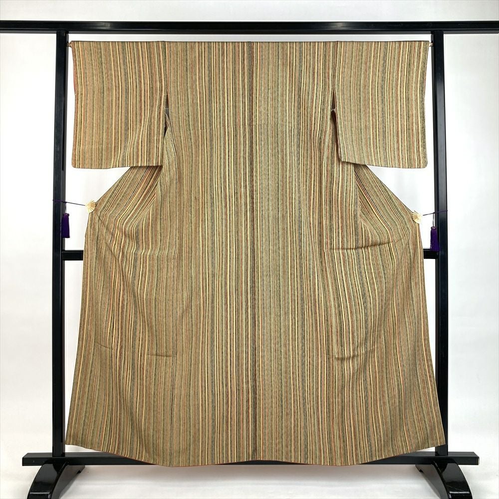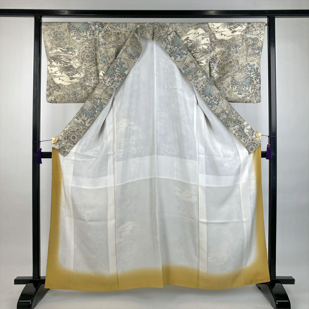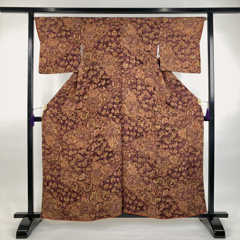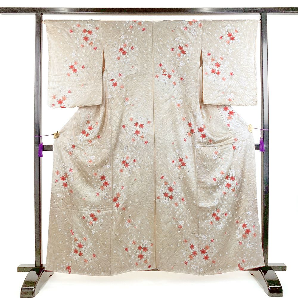 他の画像を見る (中古)小紋 ベージュ 黄色 緑 カジュアル ちりめん 染め 唐花唐草 吉祥文 オリエンタル 袷 SS【身丈】153cm【裄丈】66.5cm ¥ 16,500 税込 お気に入りに登録する