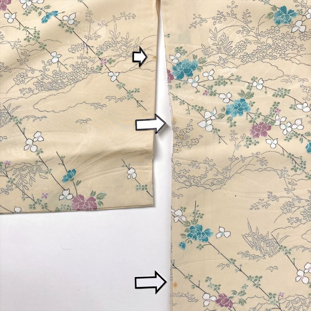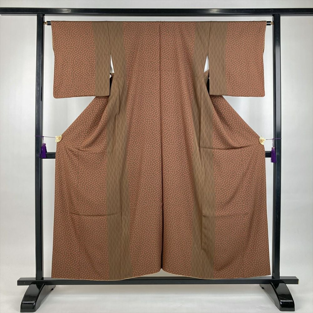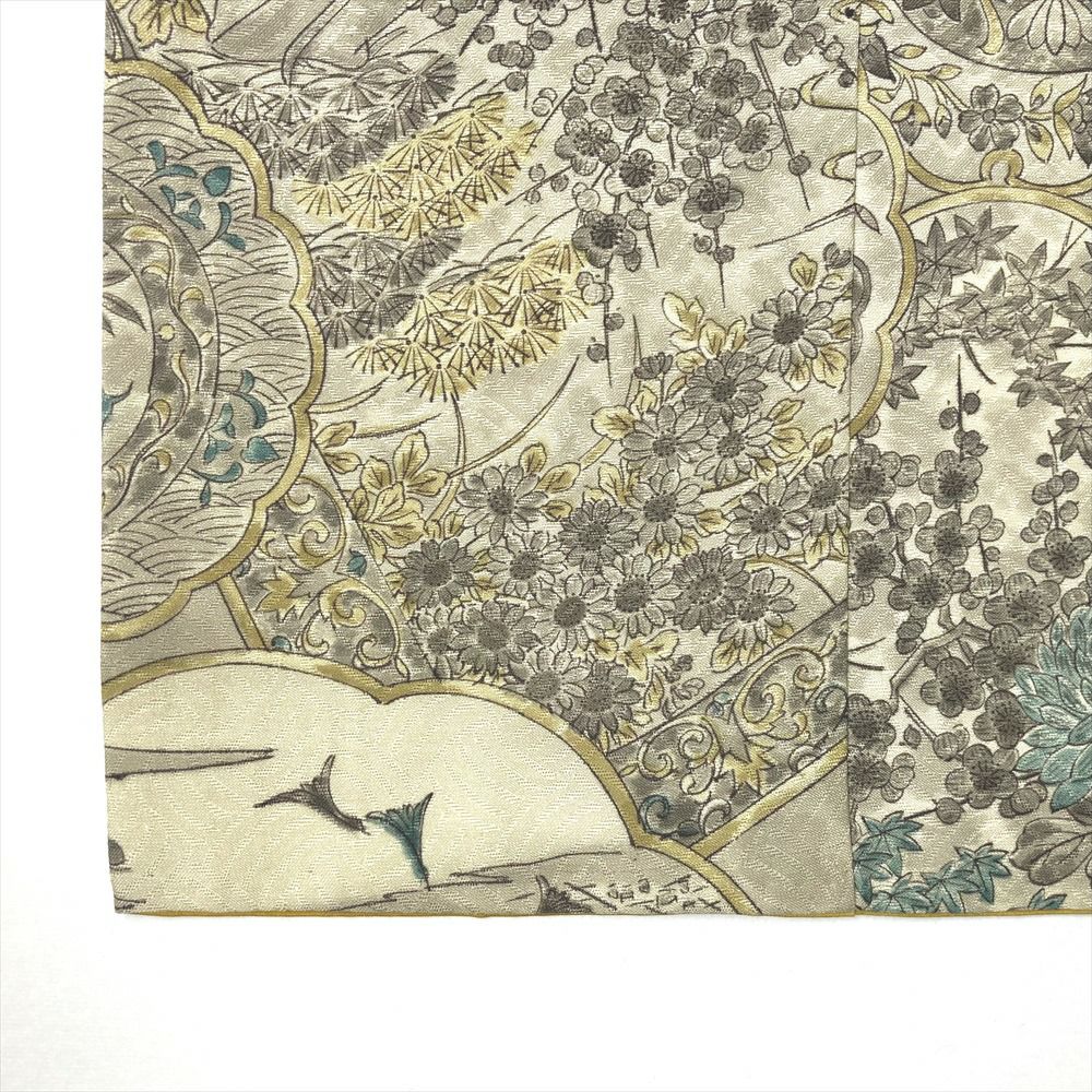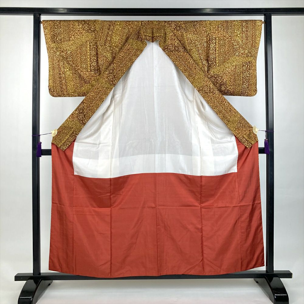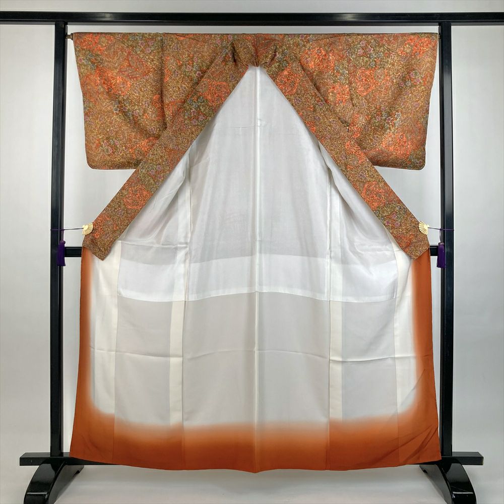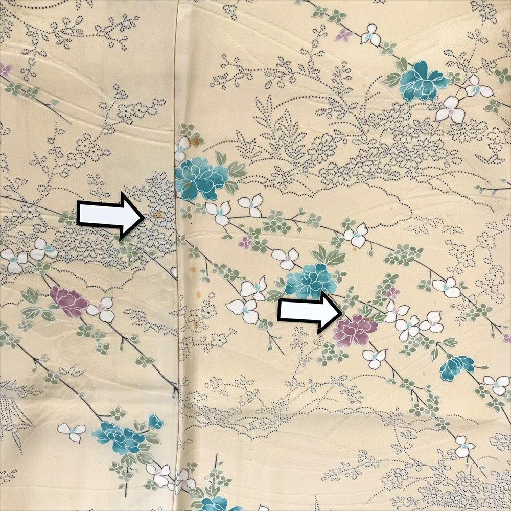 他の画像を見る (中古)小紋 ベージュ 黄色 緑 カジュアル ちりめん 染め 唐花唐草 吉祥文 オリエンタル 袷 SS【身丈】153cm【裄丈】66.5cm ¥ 16,500 税込 お気に入りに登録する