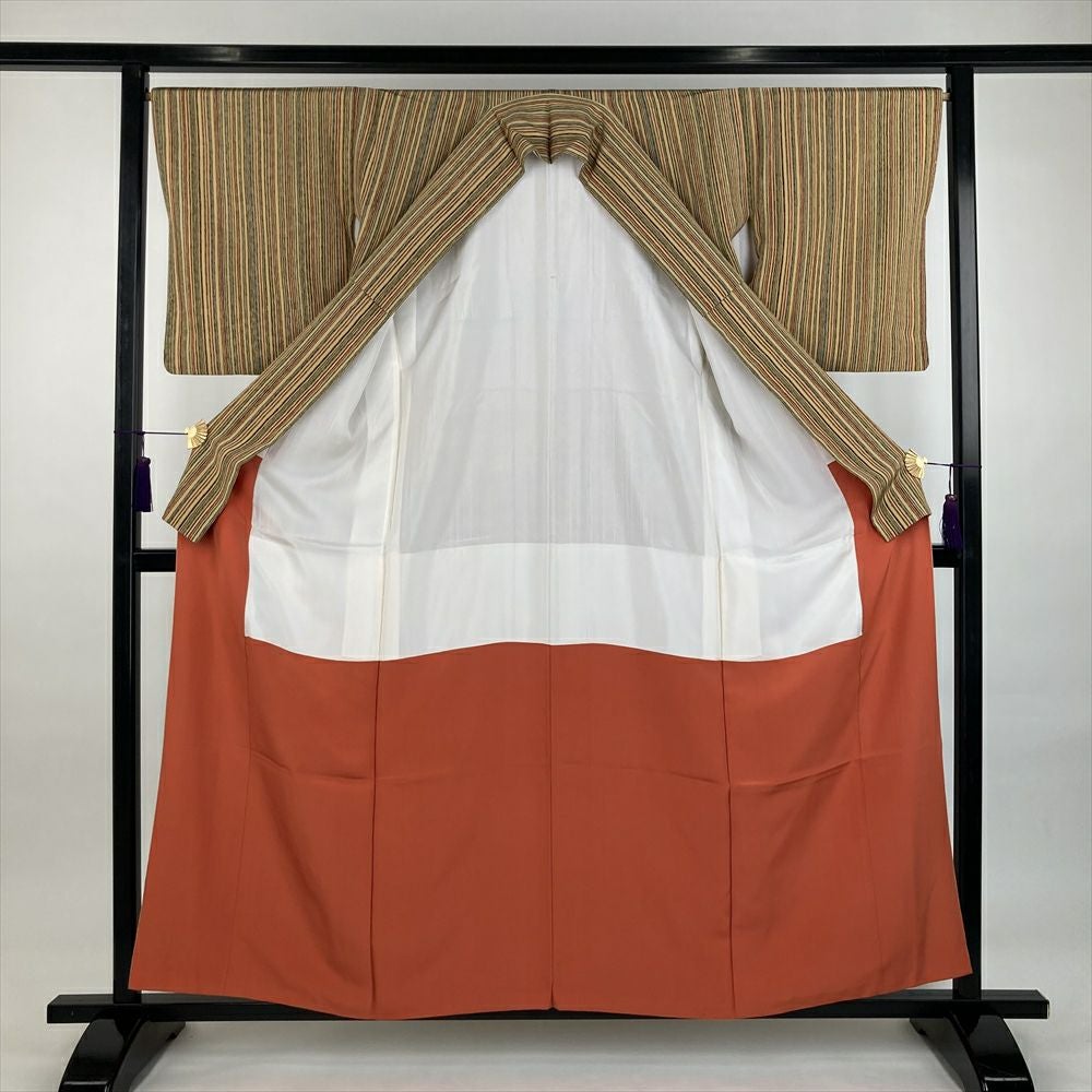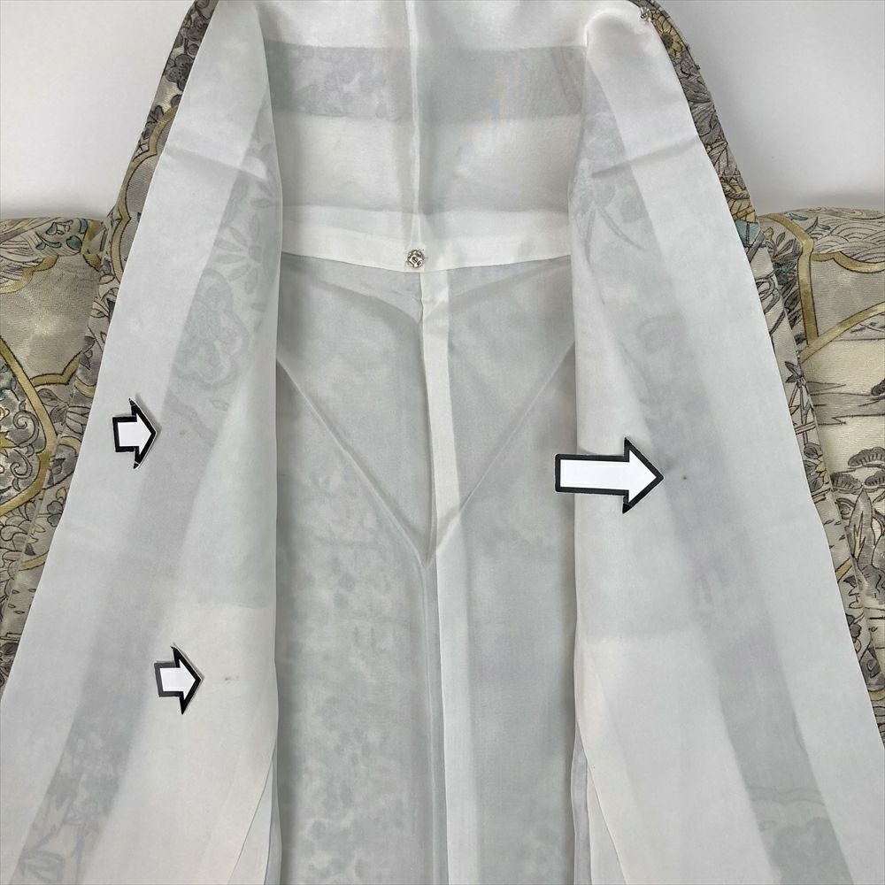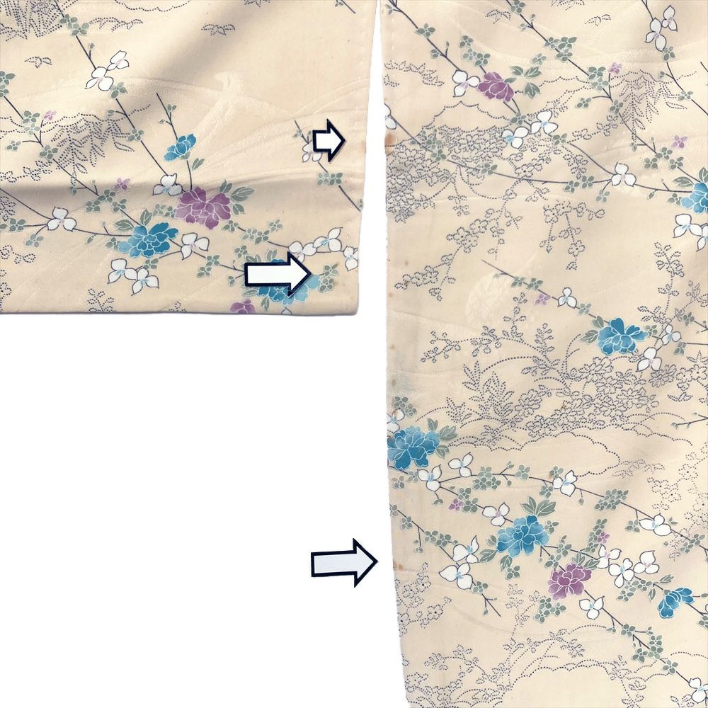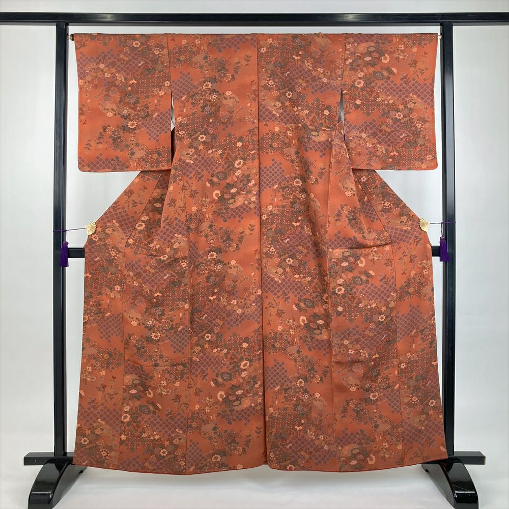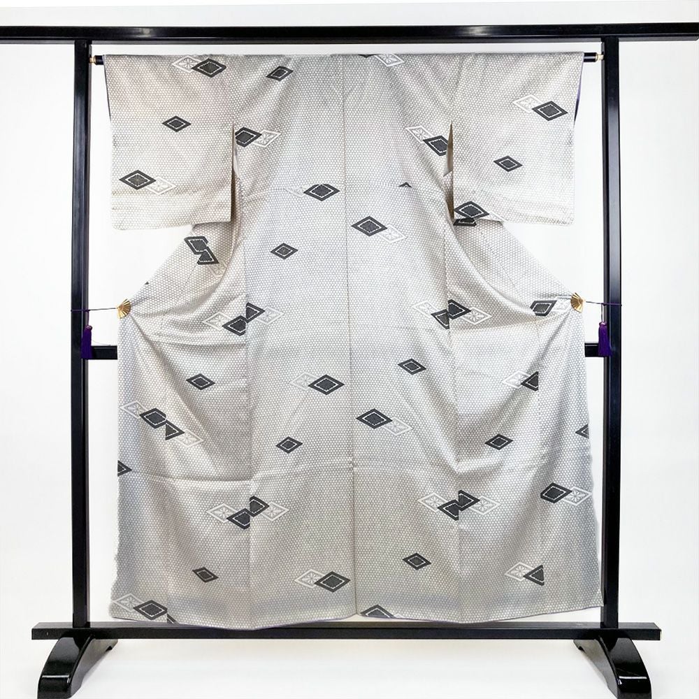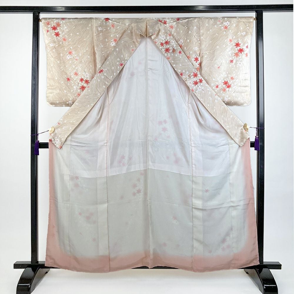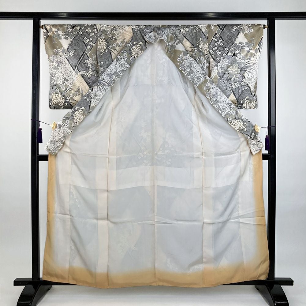 他の画像を見る (中古)小紋 ベージュ 黄色 緑 カジュアル ちりめん 染め 唐花唐草 吉祥文 オリエンタル 袷 SS【身丈】153cm【裄丈】66.5cm ¥ 16,500 税込 お気に入りに登録する