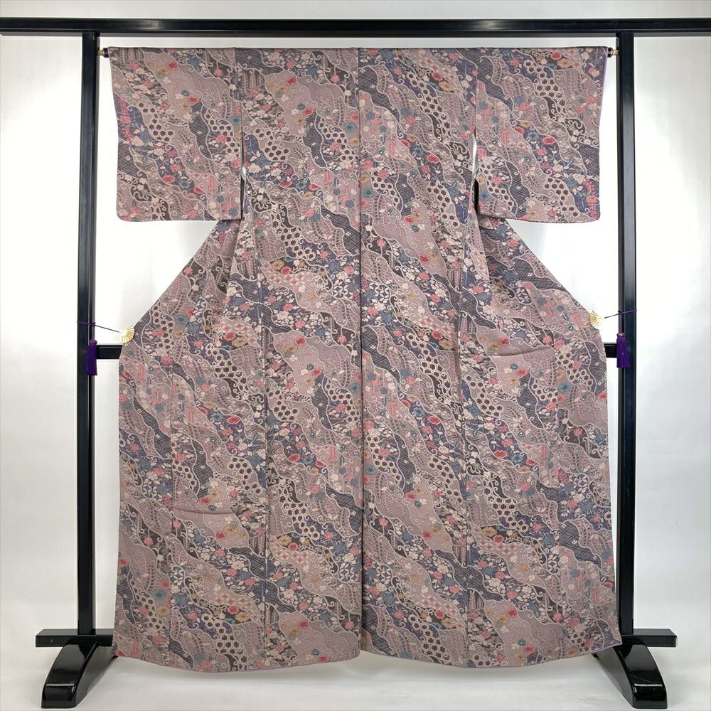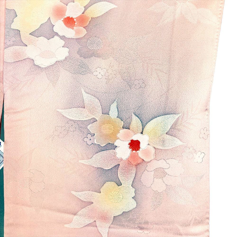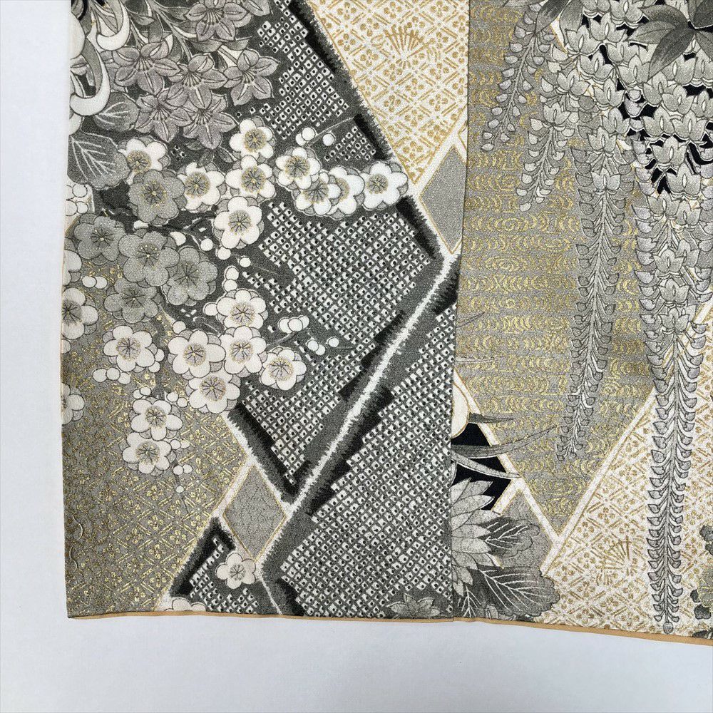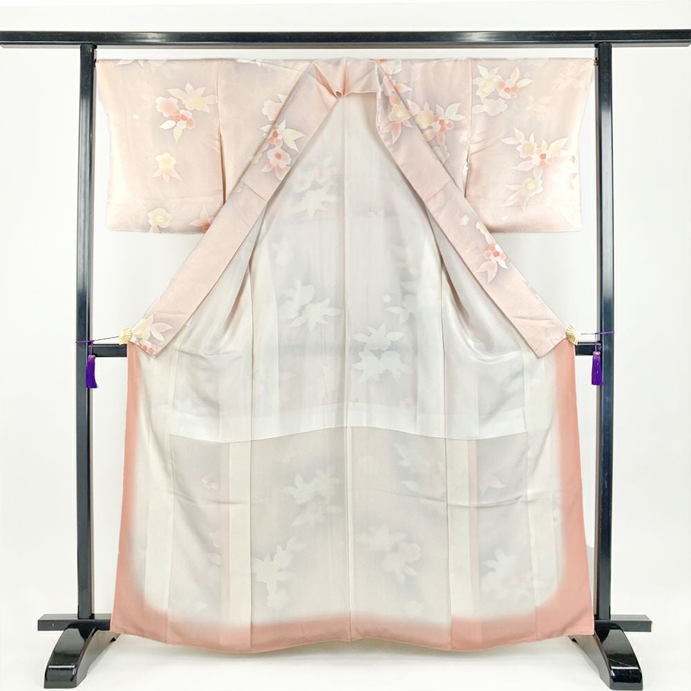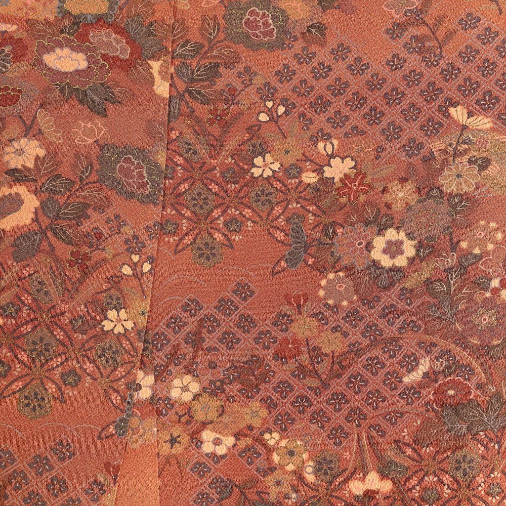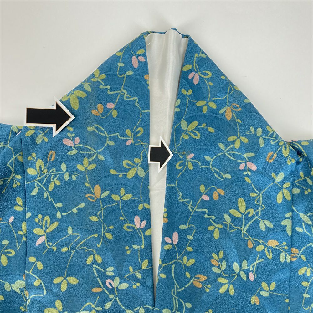 他の画像を見る (中古)小紋 ベージュ 黄色 緑 カジュアル ちりめん 染め 唐花唐草 吉祥文 オリエンタル 袷 SS【身丈】153cm【裄丈】66.5cm ¥ 16,500 税込 お気に入りに登録する