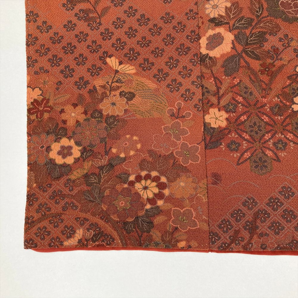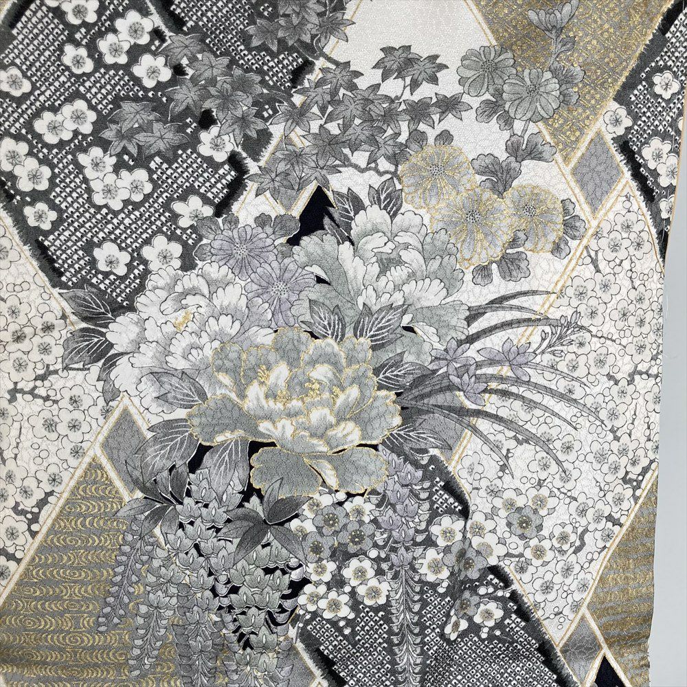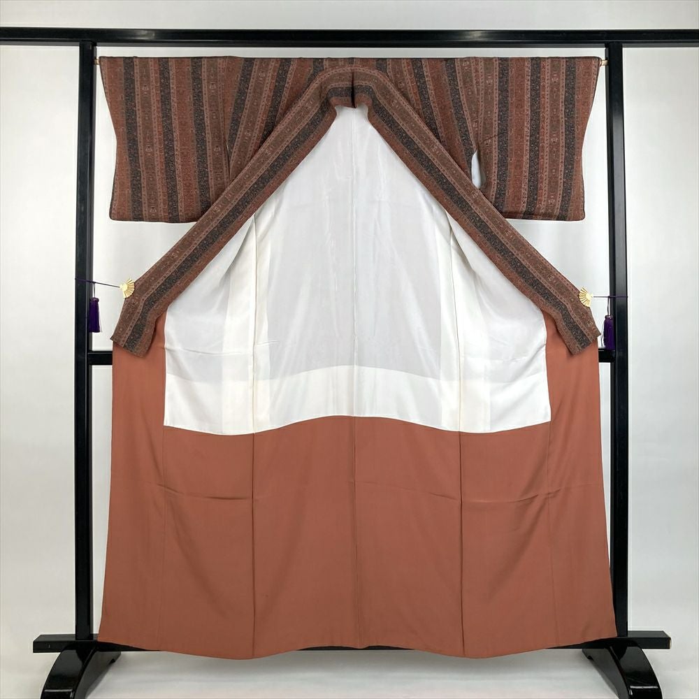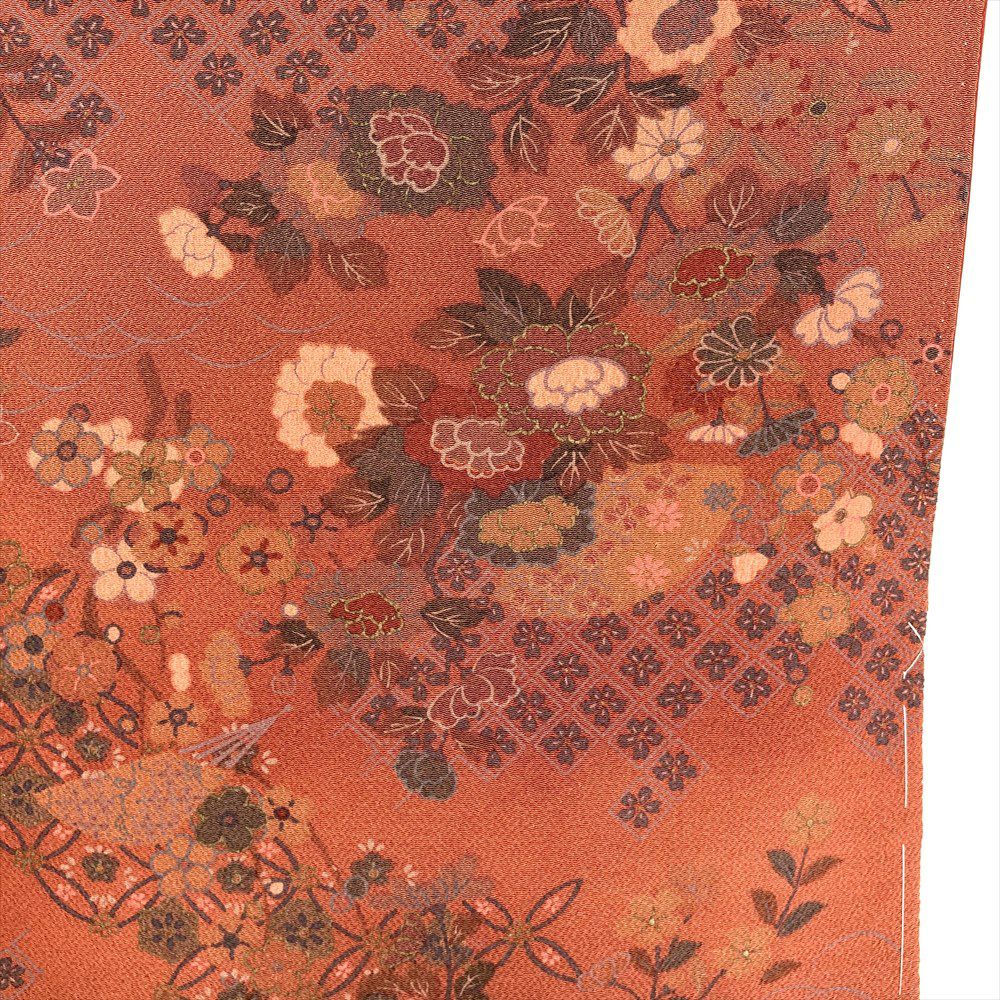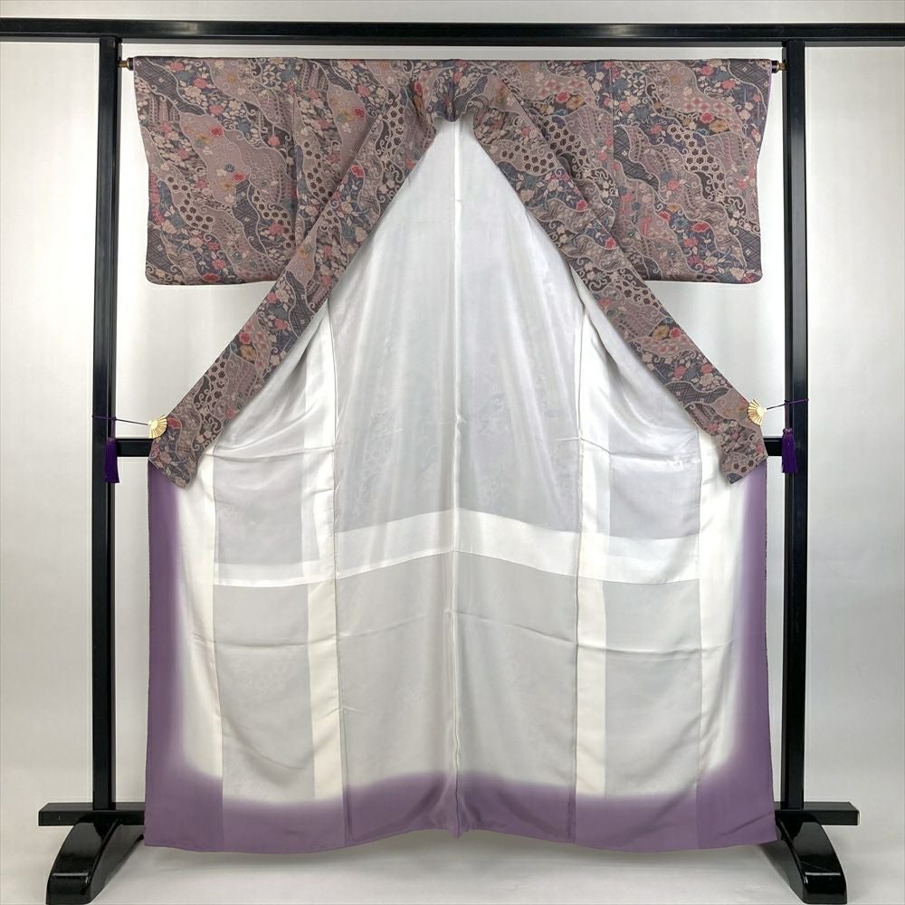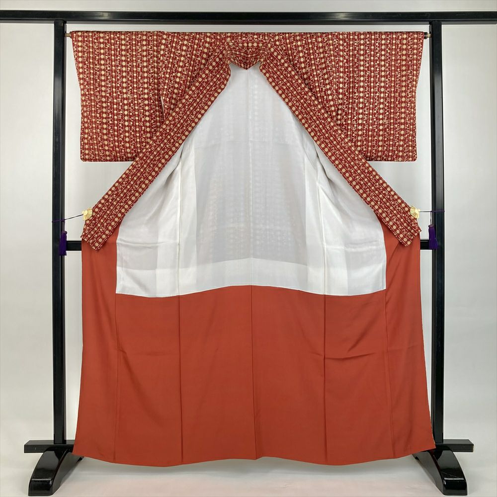他の画像を見る (中古)小紋 ベージュ 黄色 緑 カジュアル ちりめん 染め 唐花唐草 吉祥文 オリエンタル 袷 SS【身丈】153cm【裄丈】66.5cm ¥ 16,500 税込 お気に入りに登録する