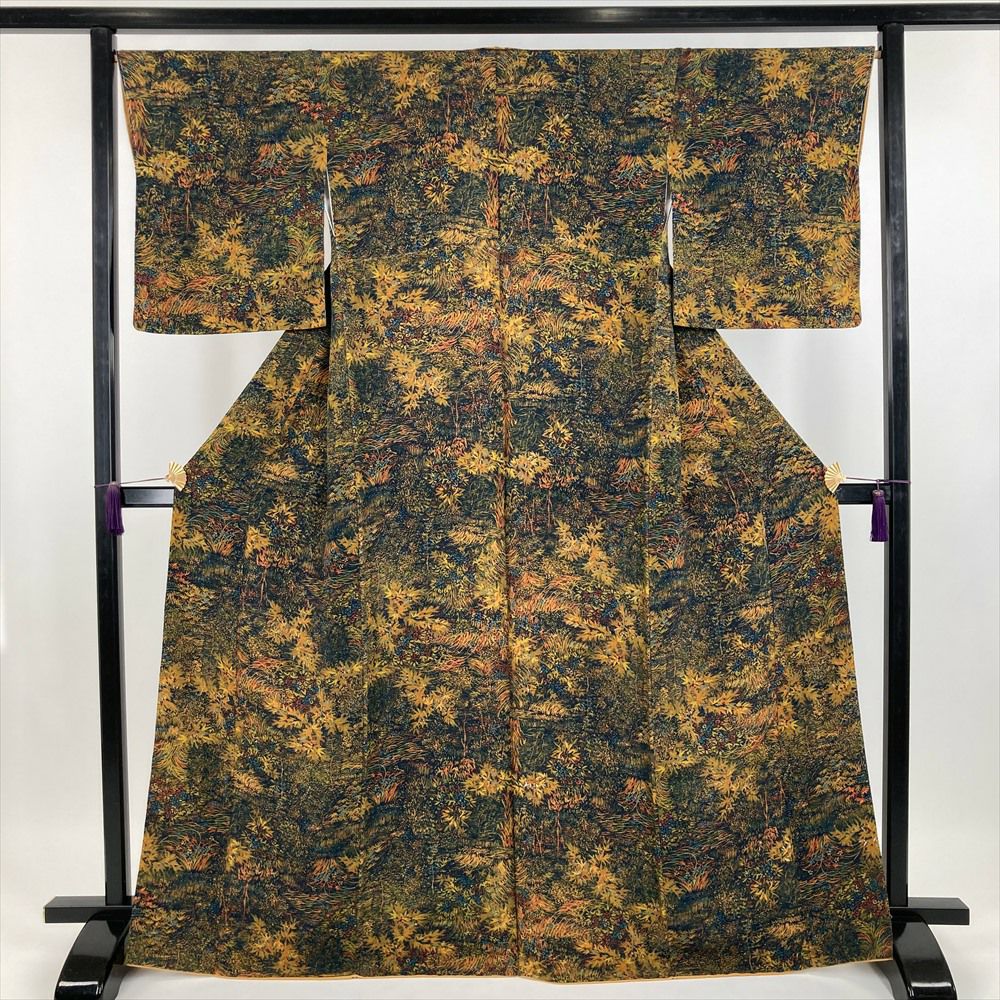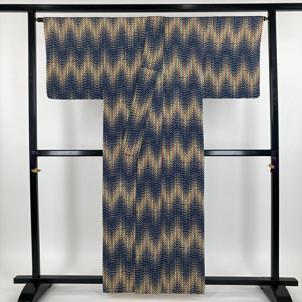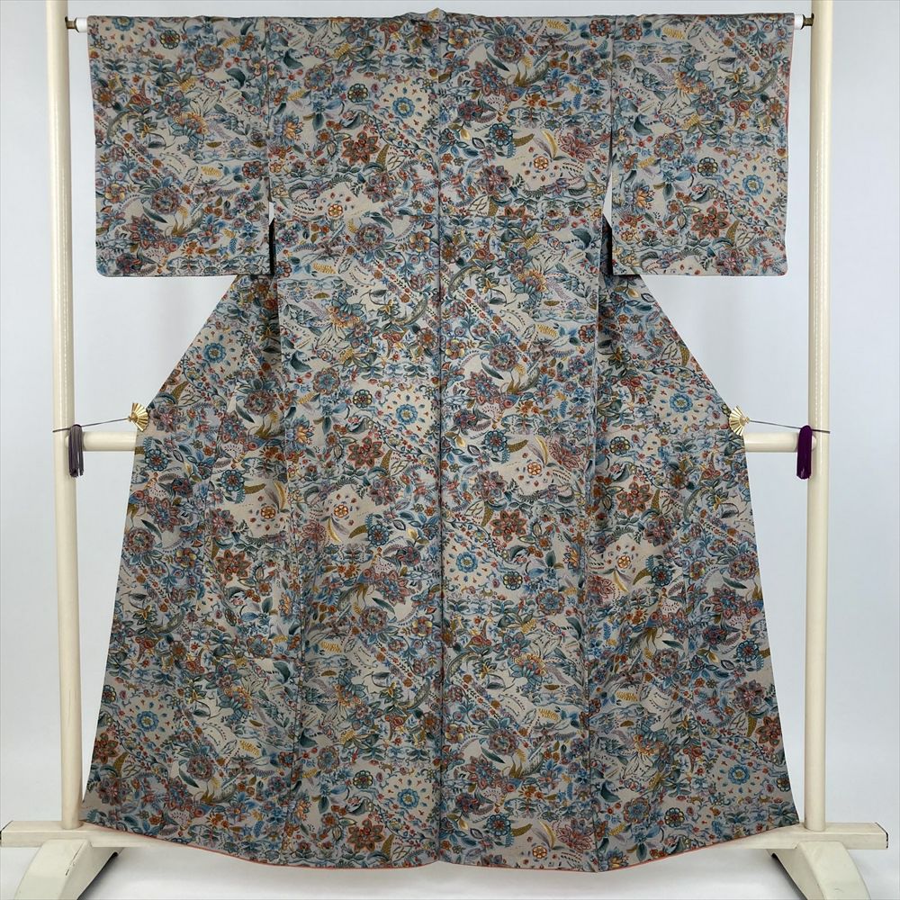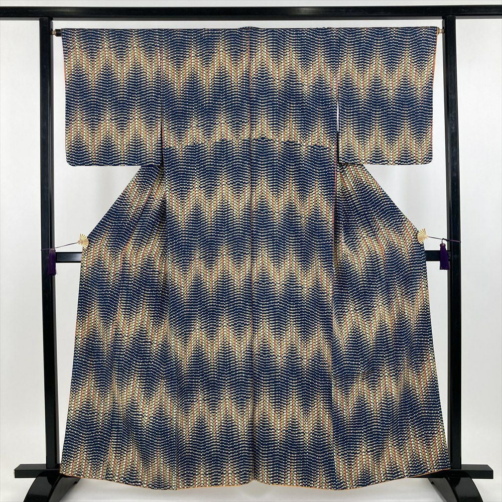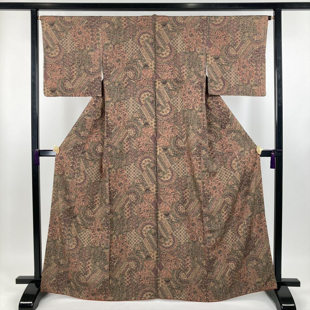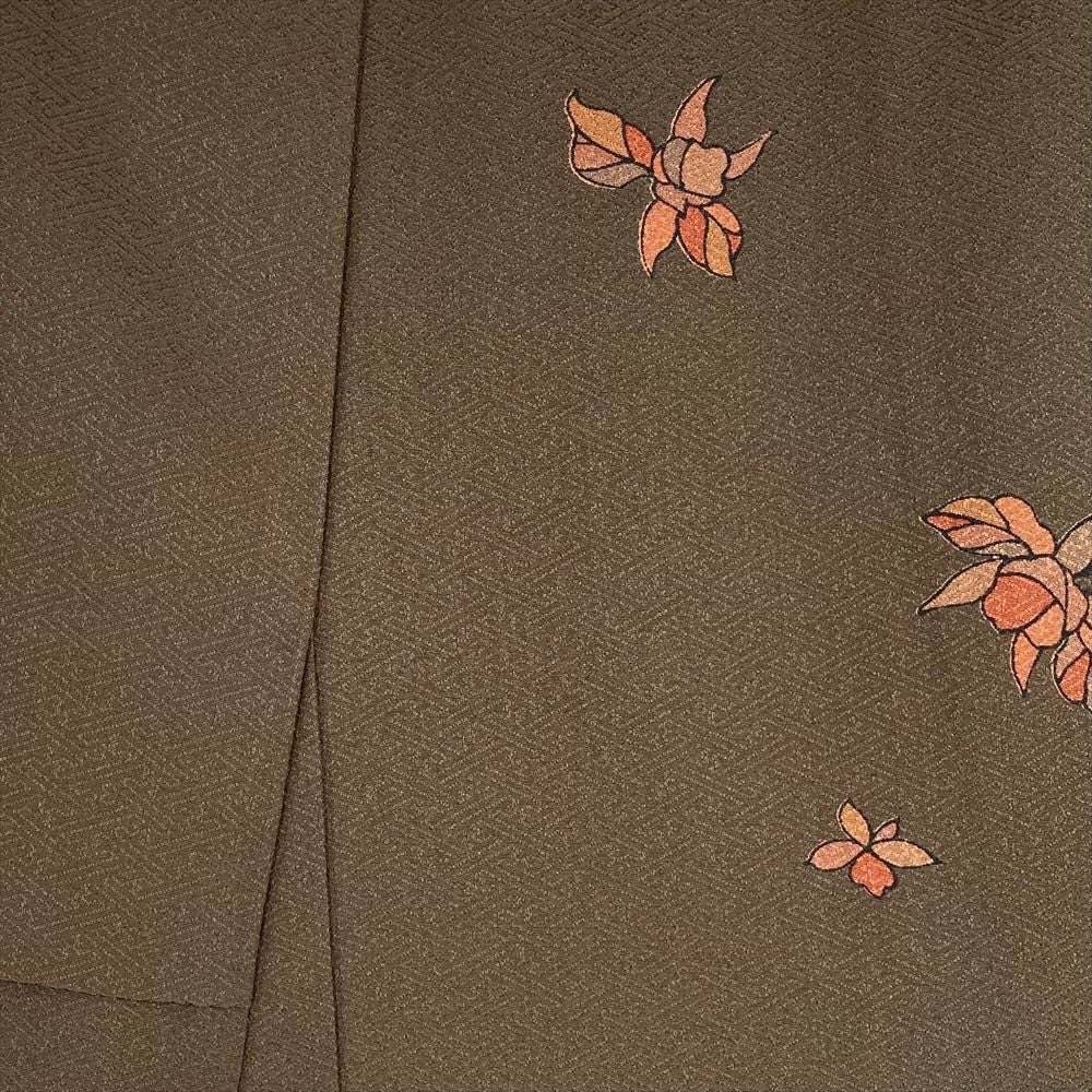 他の画像を見る (中古) 小紋 橙色 灰青色 茶色 マルチカラー カジュアル 地紋織り 染め 金彩 古典 袷 絹 【身丈】155.5cm【裄丈】65.5cm ¥ 22,000 税込 お気に入りに登録する