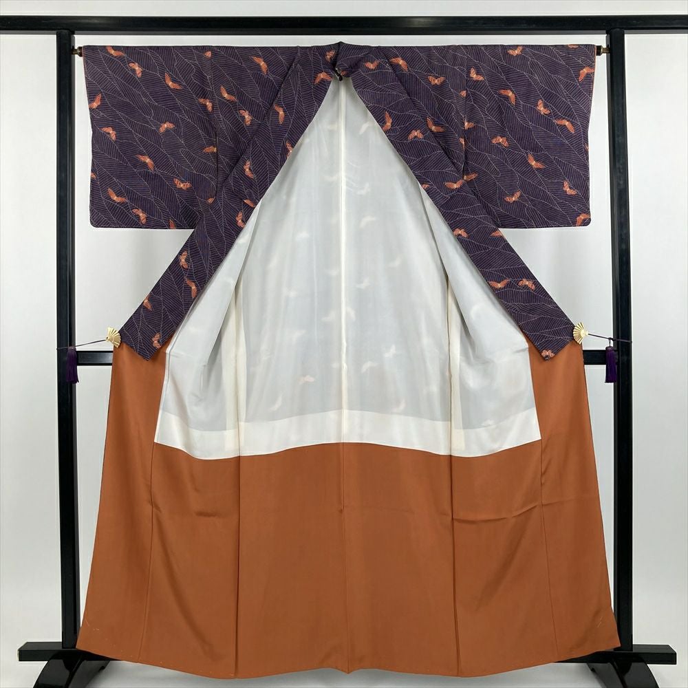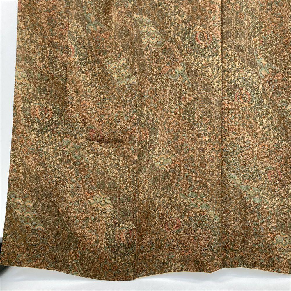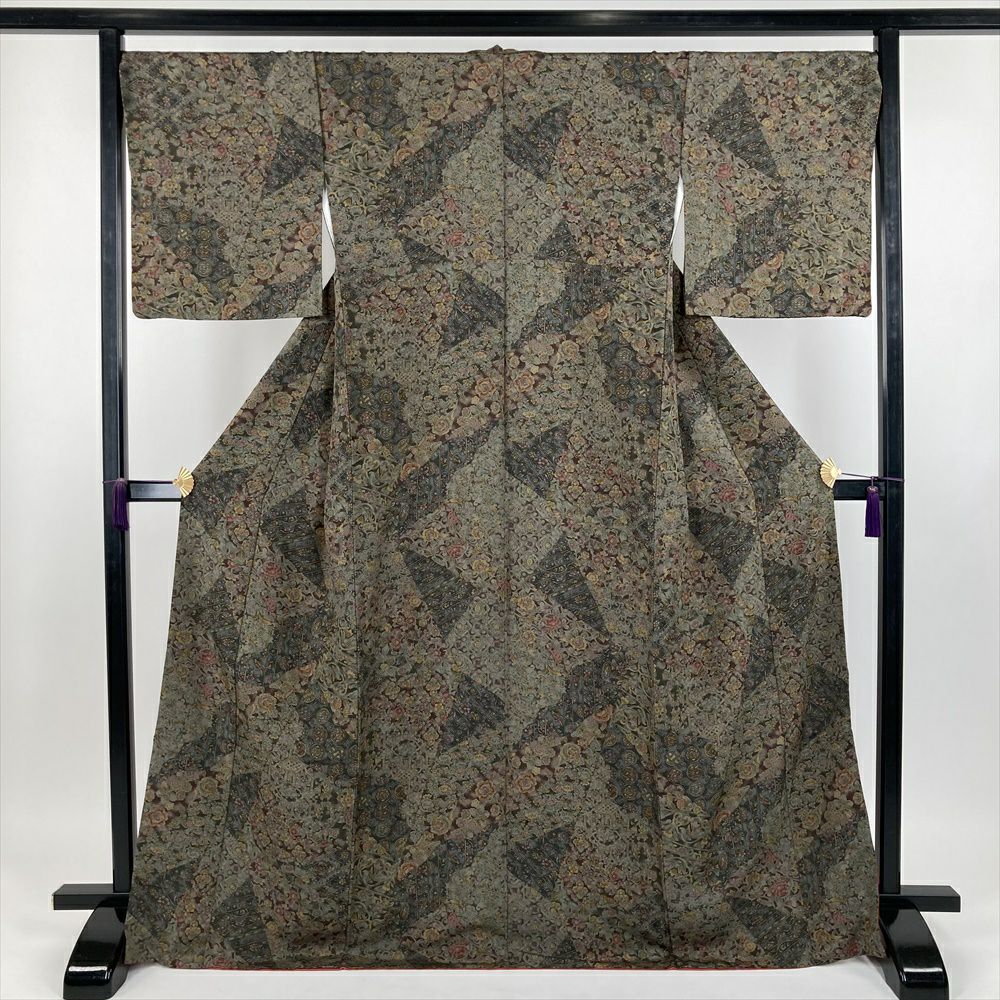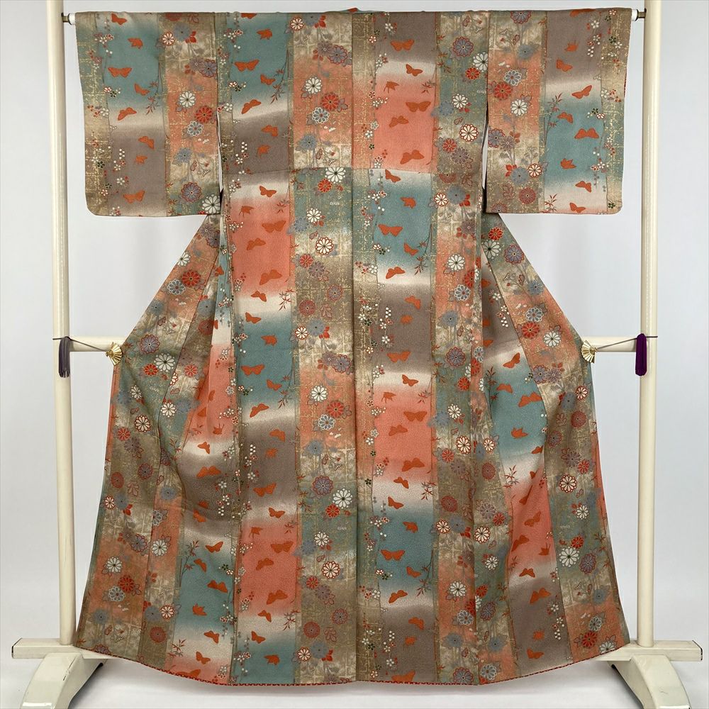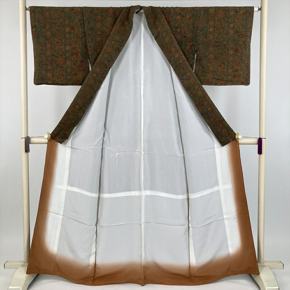 他の画像を見る (中古) 小紋 橙色 灰青色 茶色 マルチカラー カジュアル 地紋織り 染め 金彩 古典 袷 絹 【身丈】155.5cm【裄丈】65.5cm ¥ 22,000 税込 お気に入りに登録する