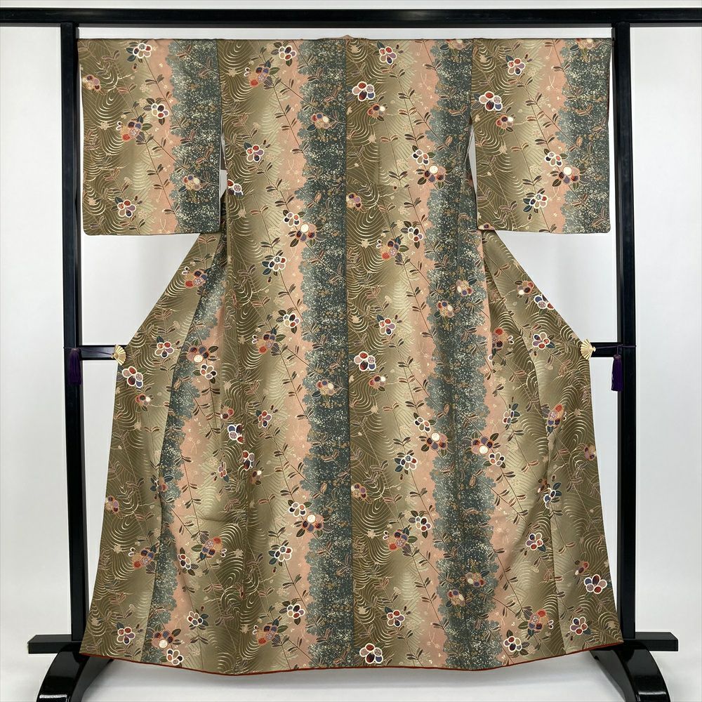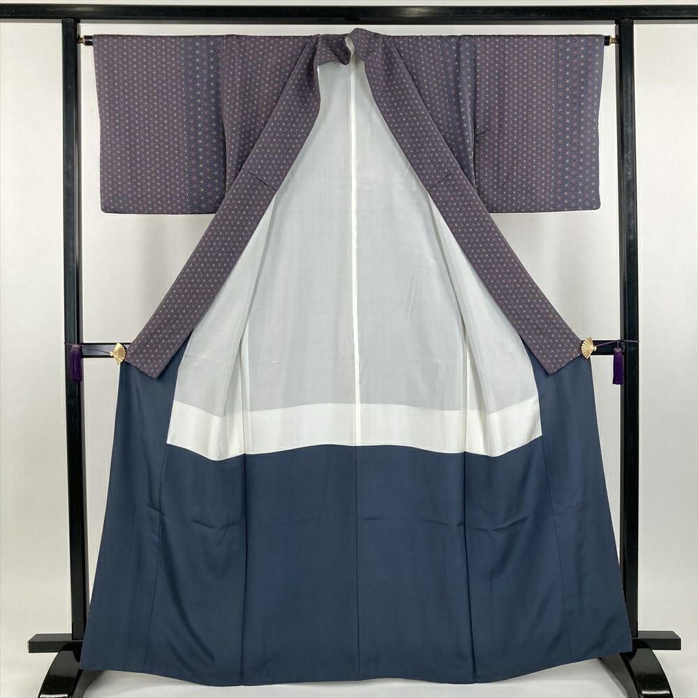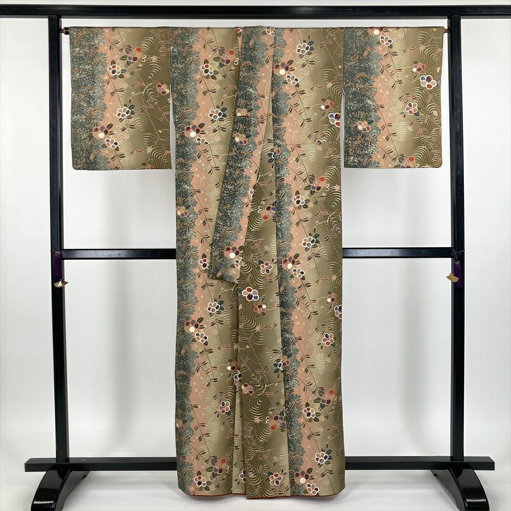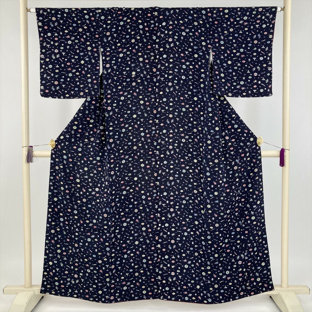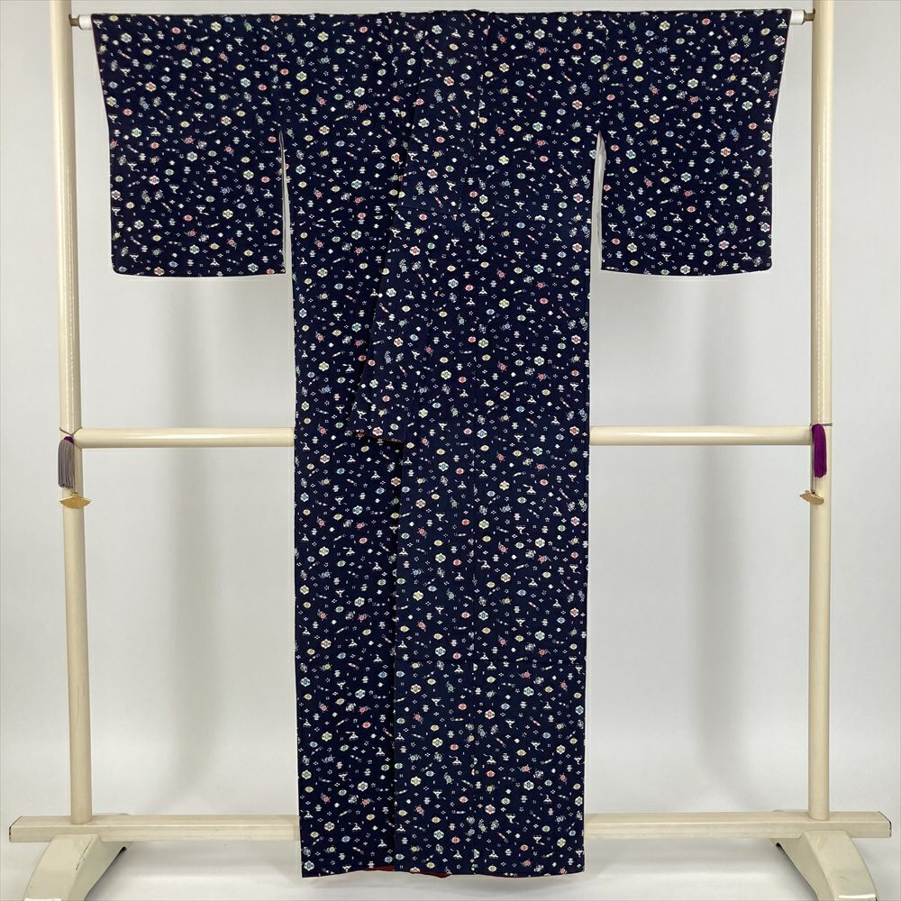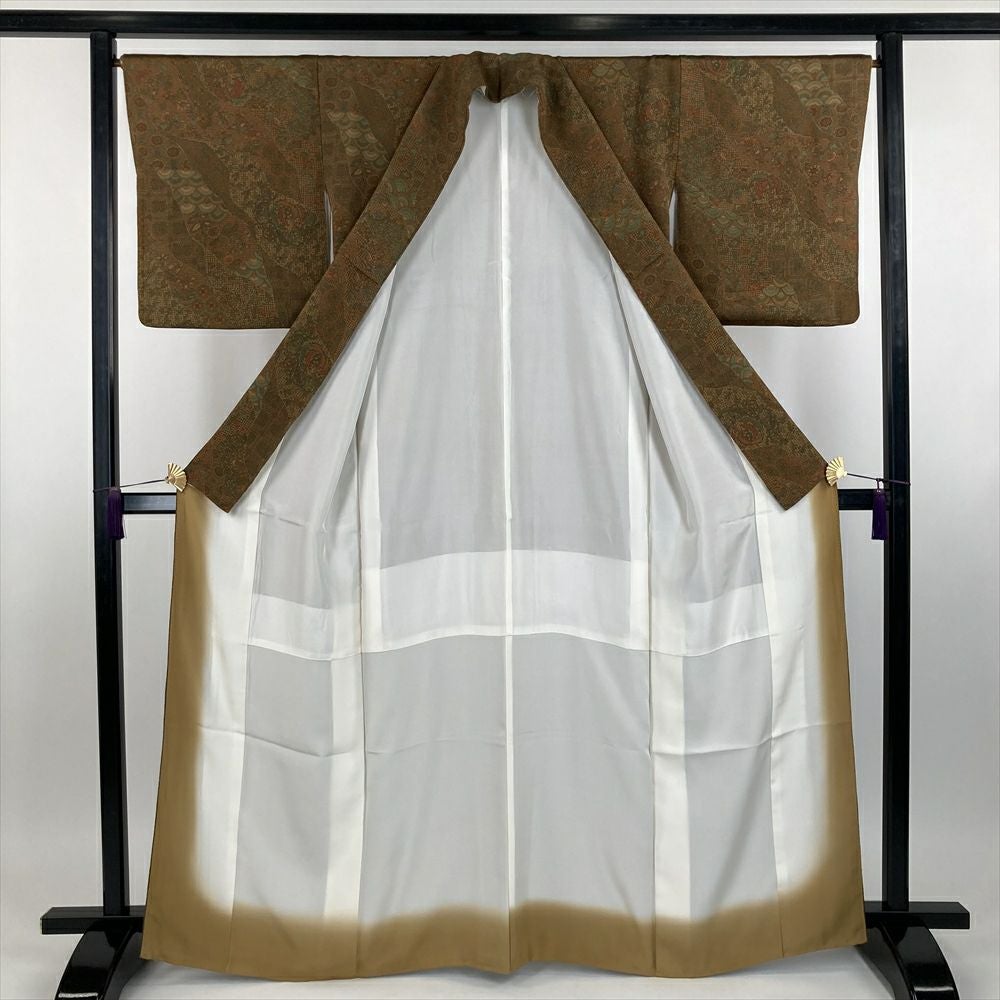 他の画像を見る (中古) 小紋 橙色 灰青色 茶色 マルチカラー カジュアル 地紋織り 染め 金彩 古典 袷 絹 【身丈】155.5cm【裄丈】65.5cm ¥ 22,000 税込 お気に入りに登録する