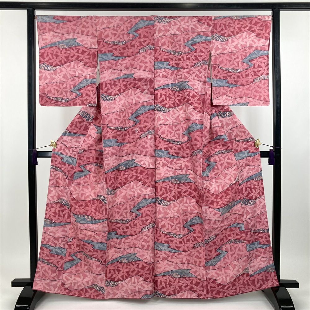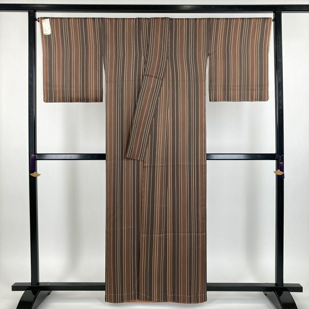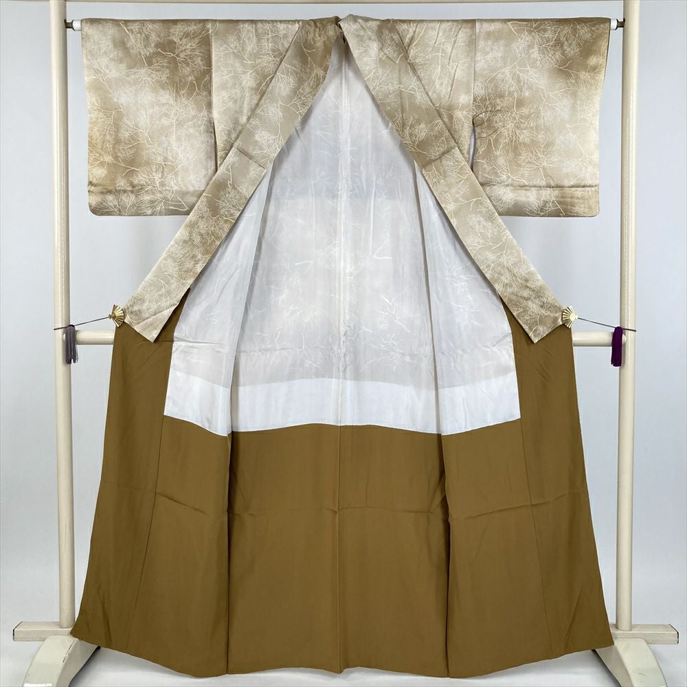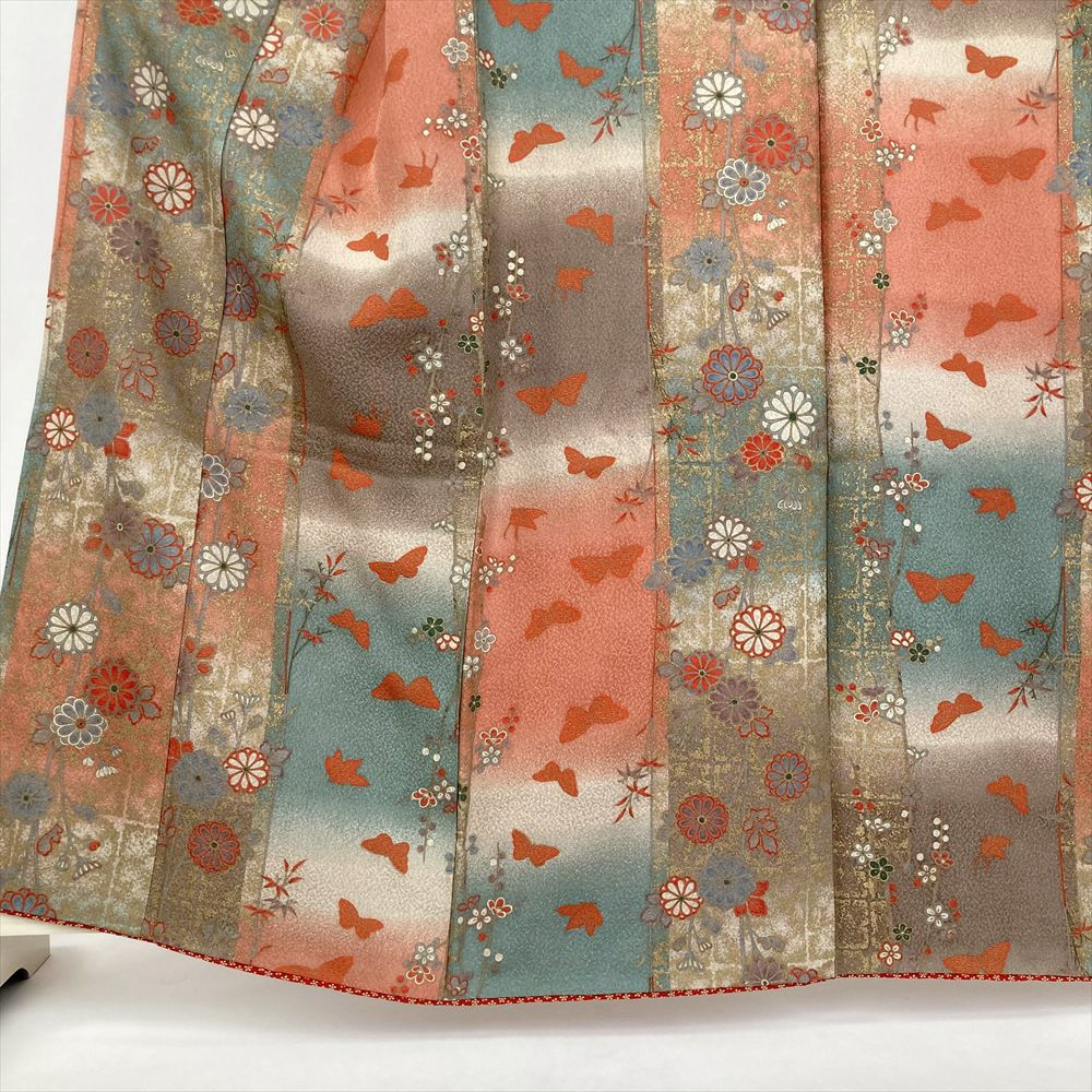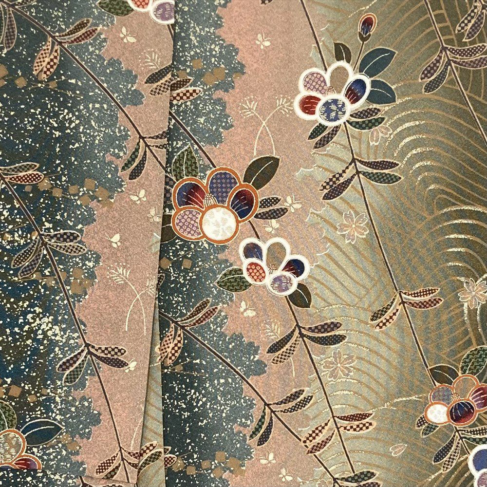 他の画像を見る (中古) 小紋 橙色 灰青色 茶色 マルチカラー カジュアル 地紋織り 染め 金彩 古典 袷 絹 【身丈】155.5cm【裄丈】65.5cm ¥ 22,000 税込 お気に入りに登録する