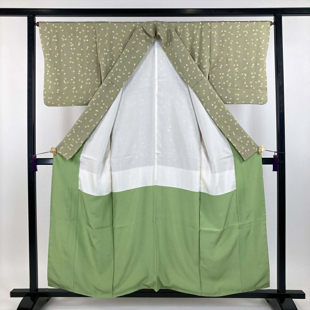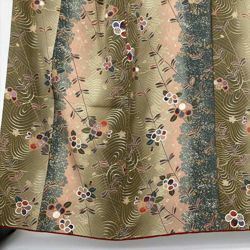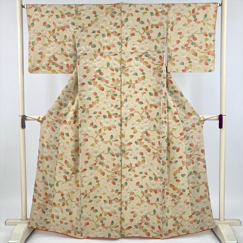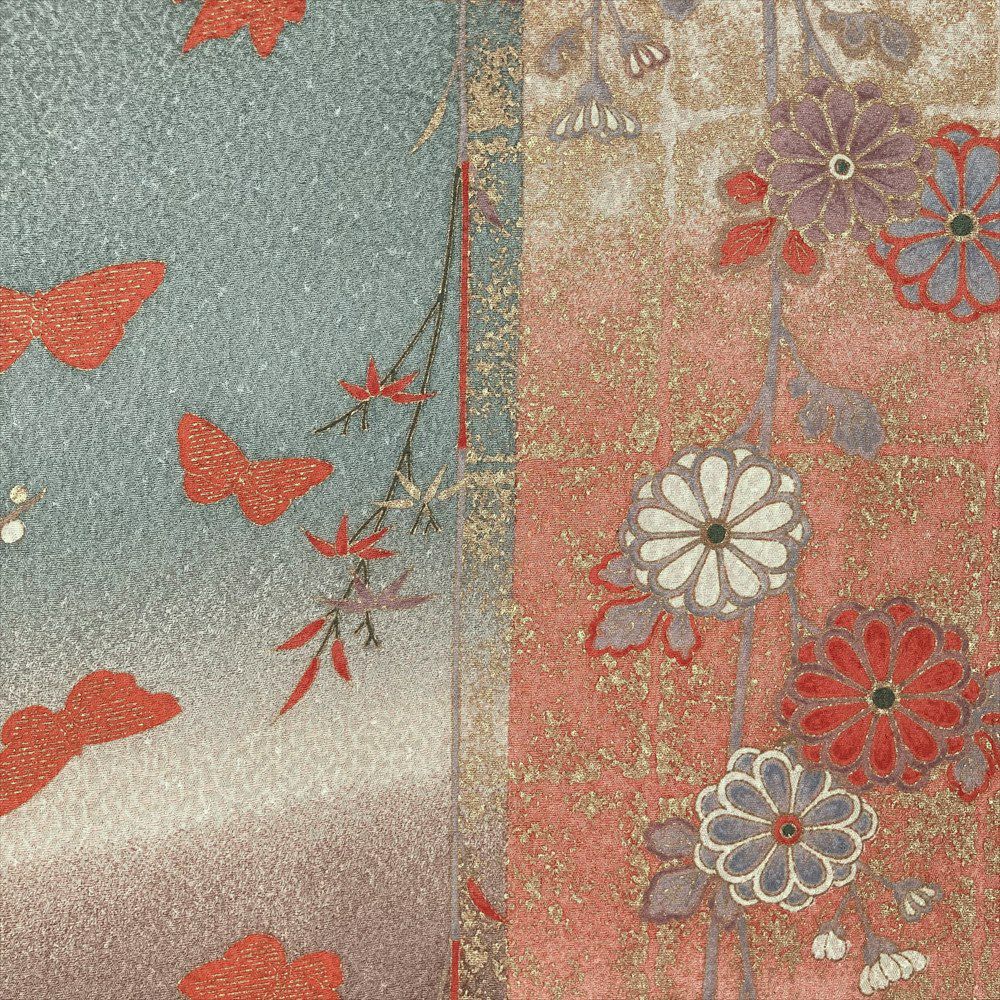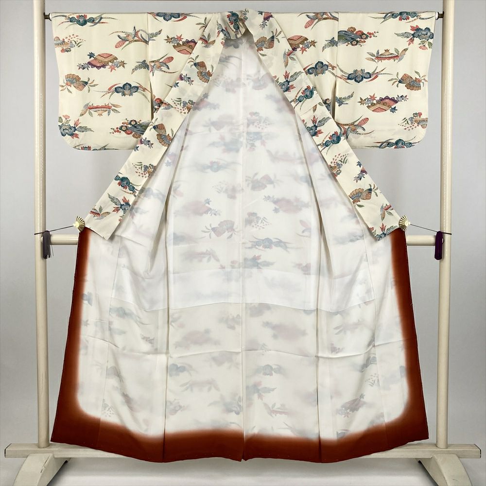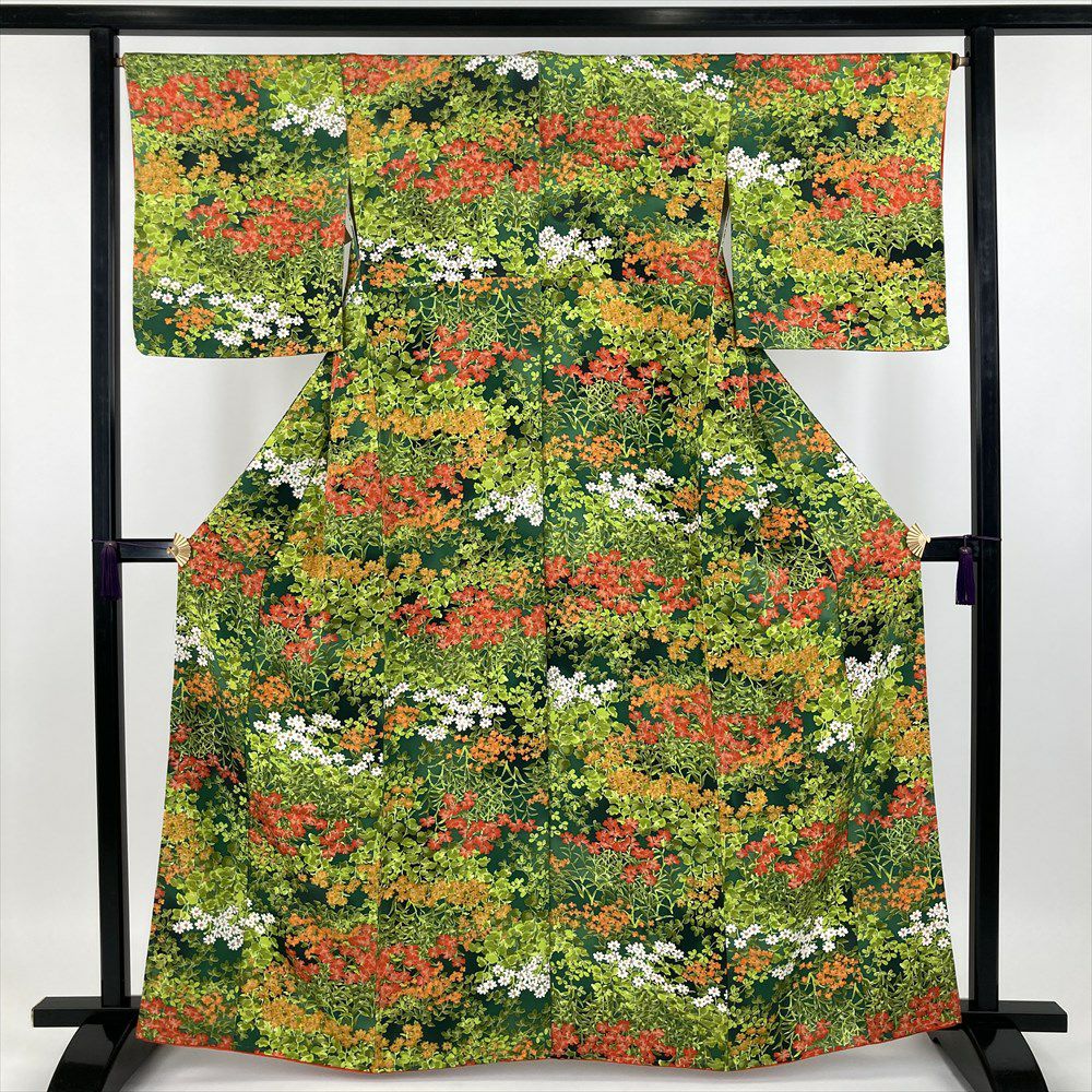 他の画像を見る (中古) 小紋 橙色 灰青色 茶色 マルチカラー カジュアル 地紋織り 染め 金彩 古典 袷 絹 【身丈】155.5cm【裄丈】65.5cm ¥ 22,000 税込 お気に入りに登録する