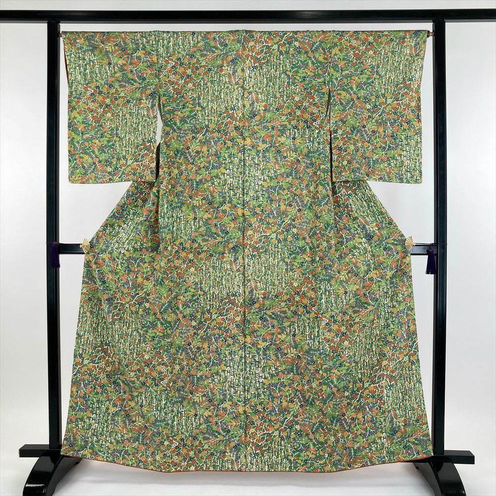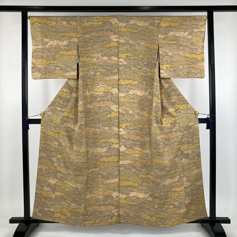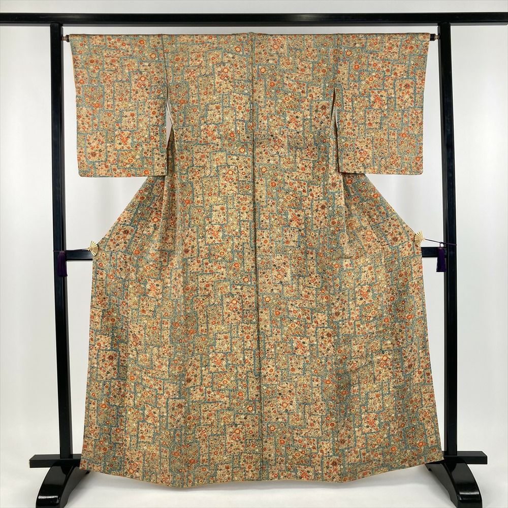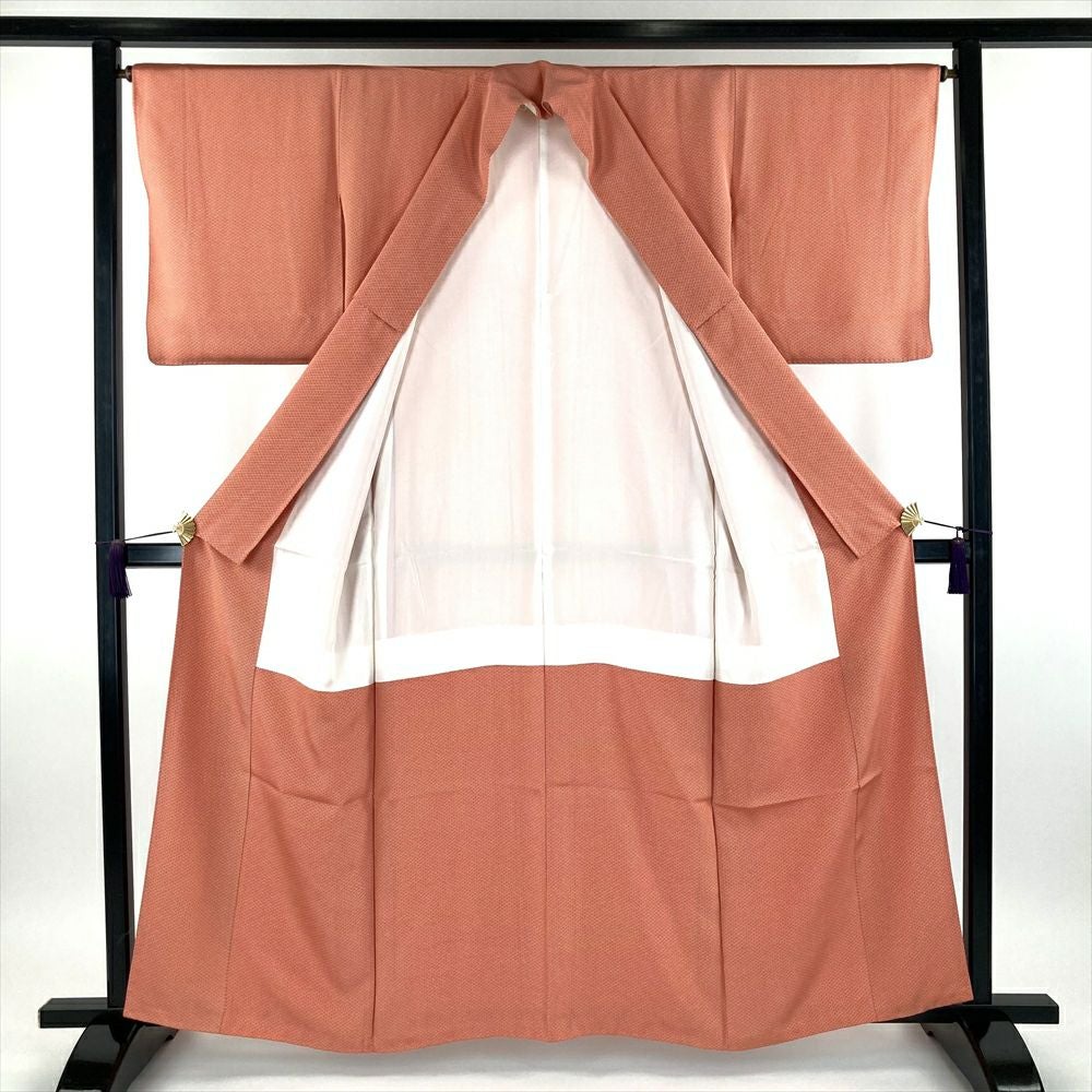 他の画像を見る (中古) 小紋 薄芥子色 柿色 茶色 オレンジ カジュアル ちりめん 染め 雲取り 和更紗調 袷 SS 【身丈】152cm【裄丈】63.5cm ¥ 11,000 税込 お気に入りに登録する
