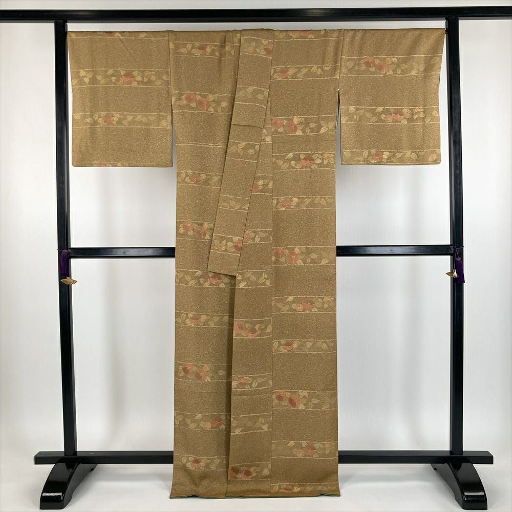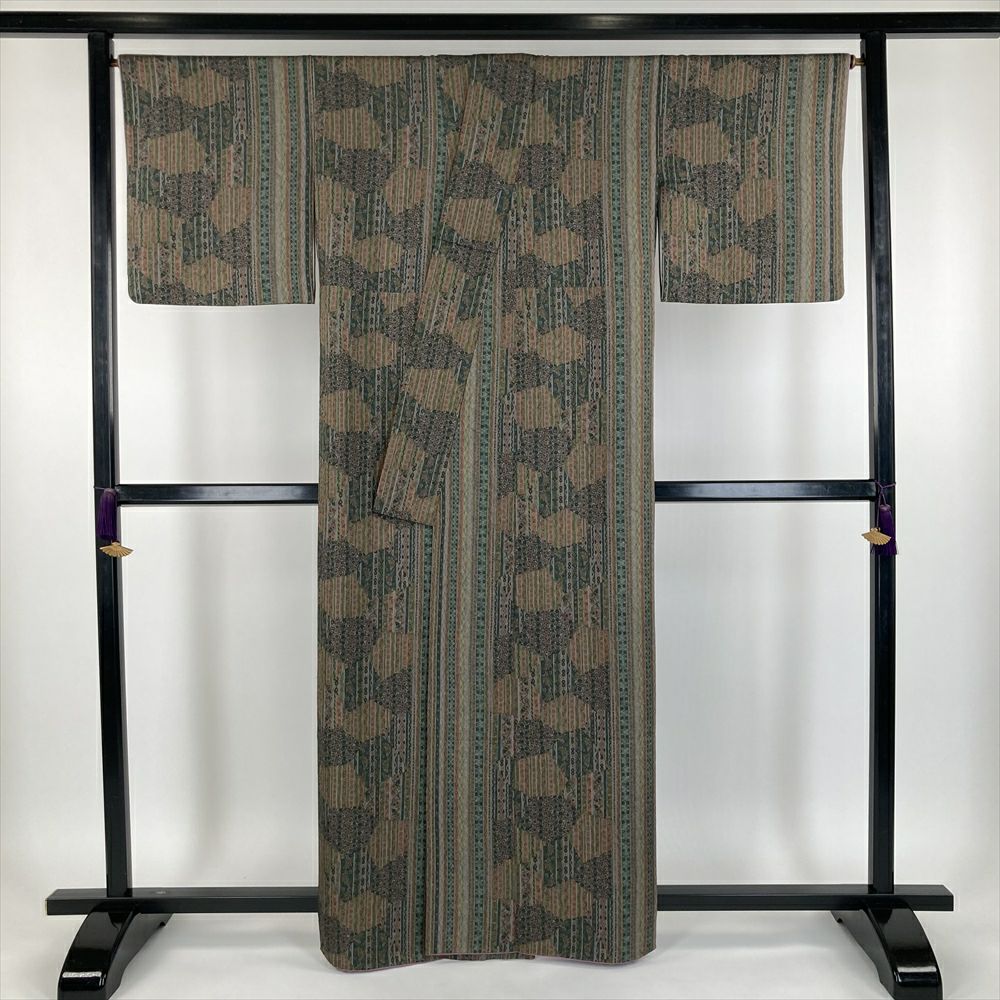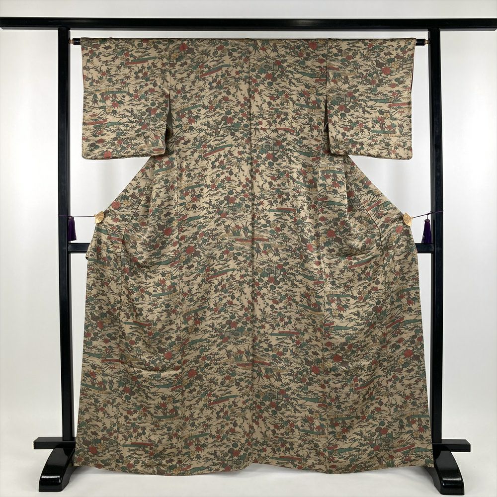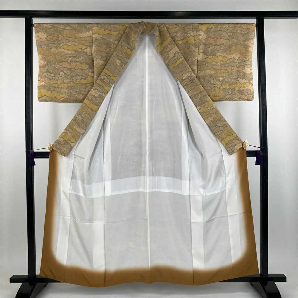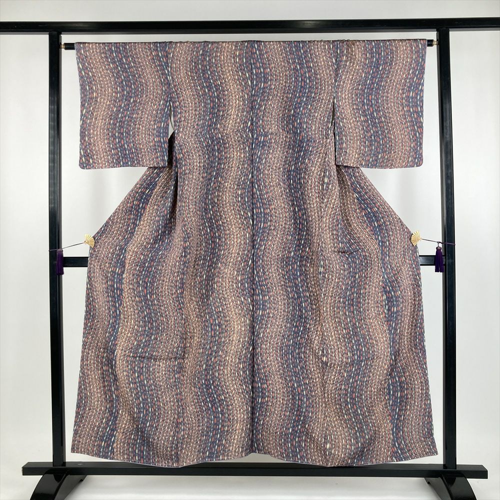 他の画像を見る (中古) 小紋 薄芥子色 柿色 茶色 オレンジ カジュアル ちりめん 染め 雲取り 和更紗調 袷 SS 【身丈】152cm【裄丈】63.5cm ¥ 11,000 税込 お気に入りに登録する
