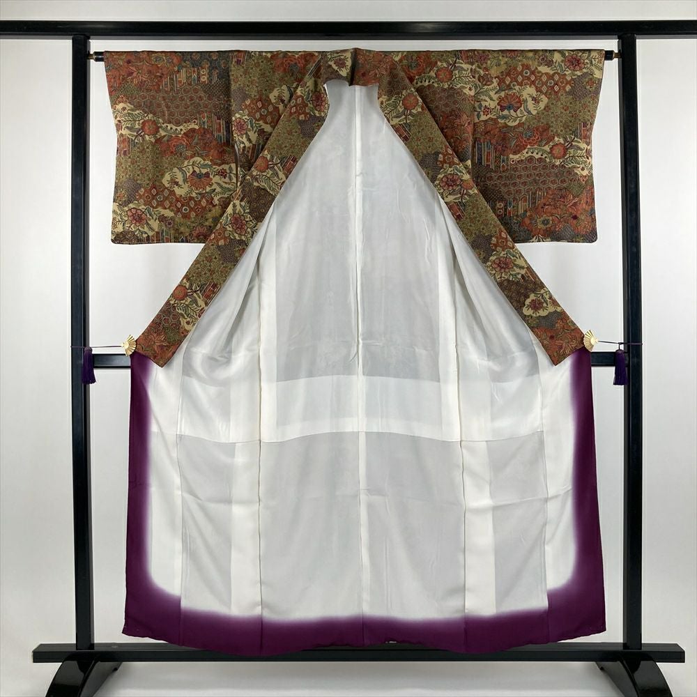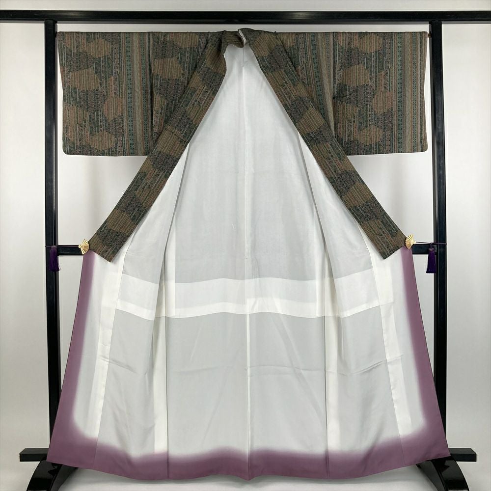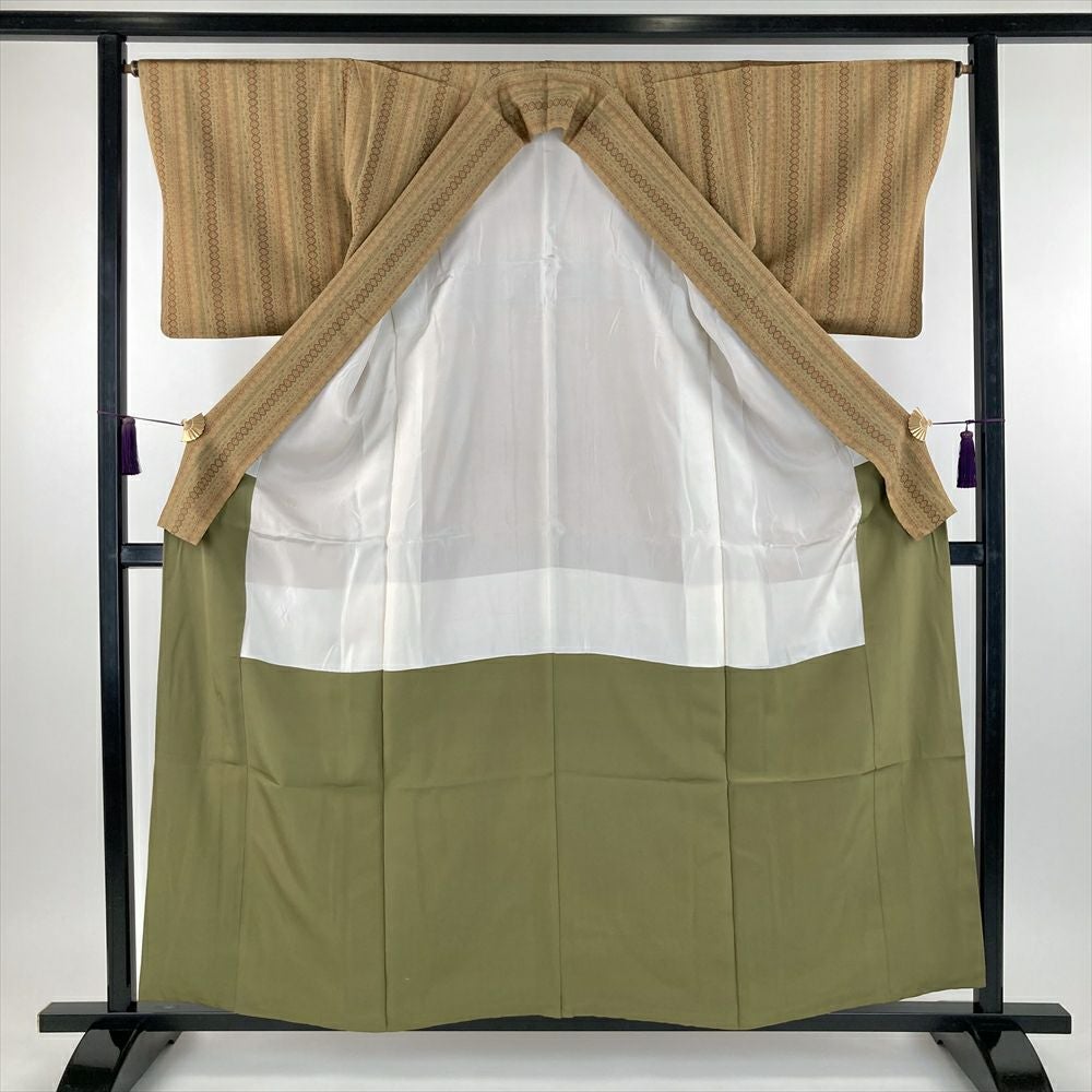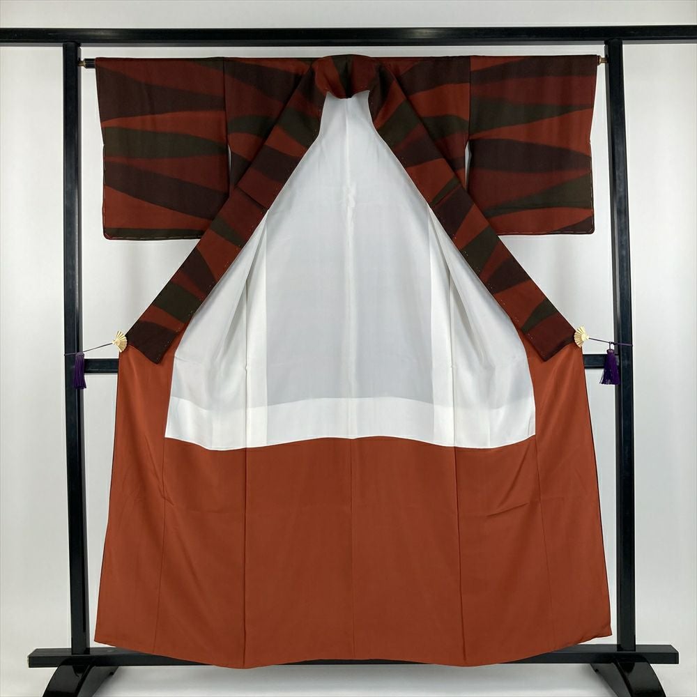 他の画像を見る (中古) 小紋 薄芥子色 柿色 茶色 オレンジ カジュアル ちりめん 染め 雲取り 和更紗調 袷 SS 【身丈】152cm【裄丈】63.5cm ¥ 11,000 税込 お気に入りに登録する