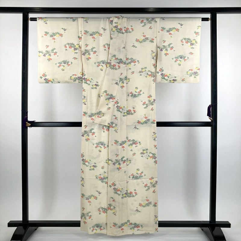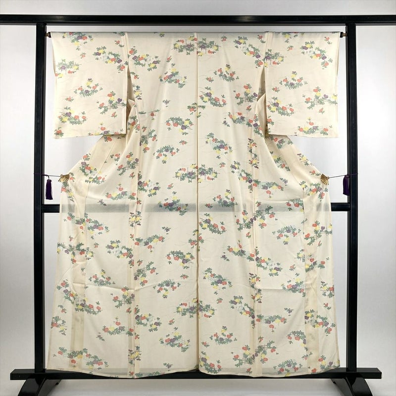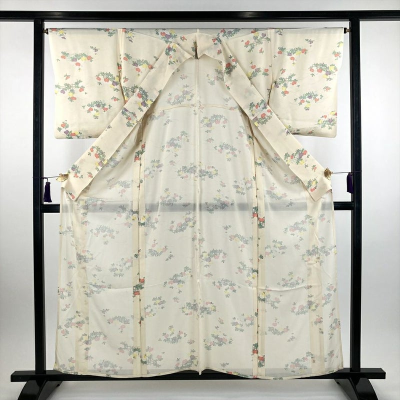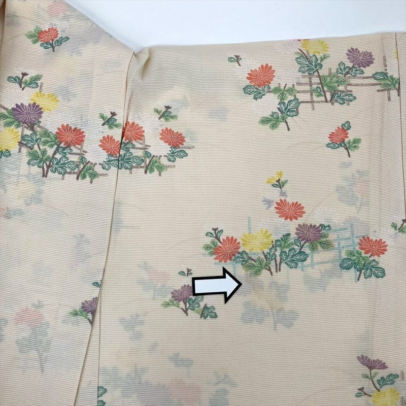 (中古) 絽小紋 薄黄色 カジュアル 菊 垣根 夏 SS【身丈】154.5cm【裄丈】66cm