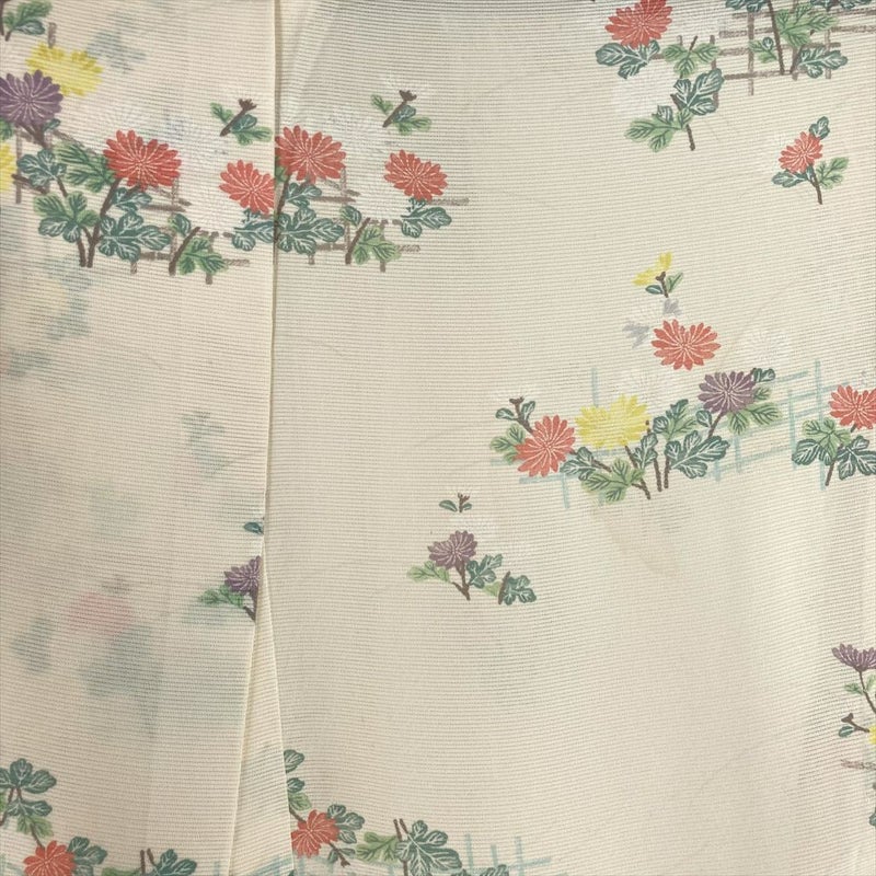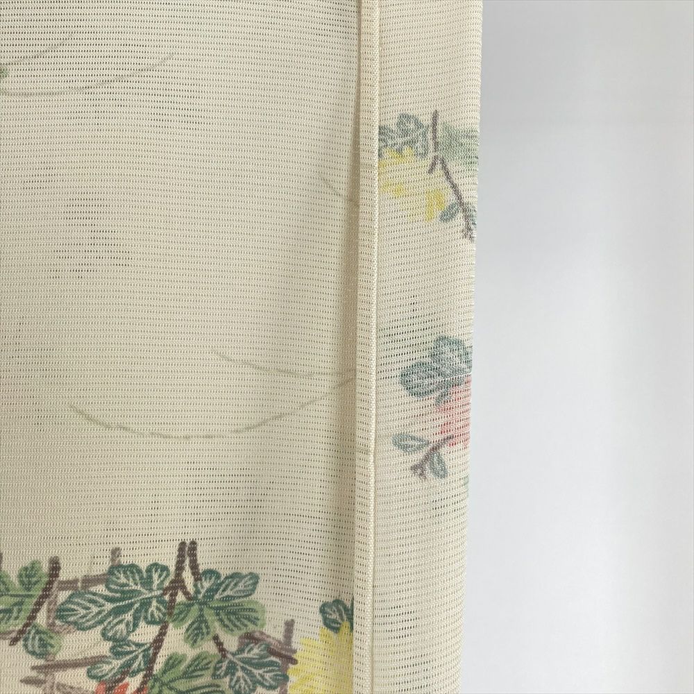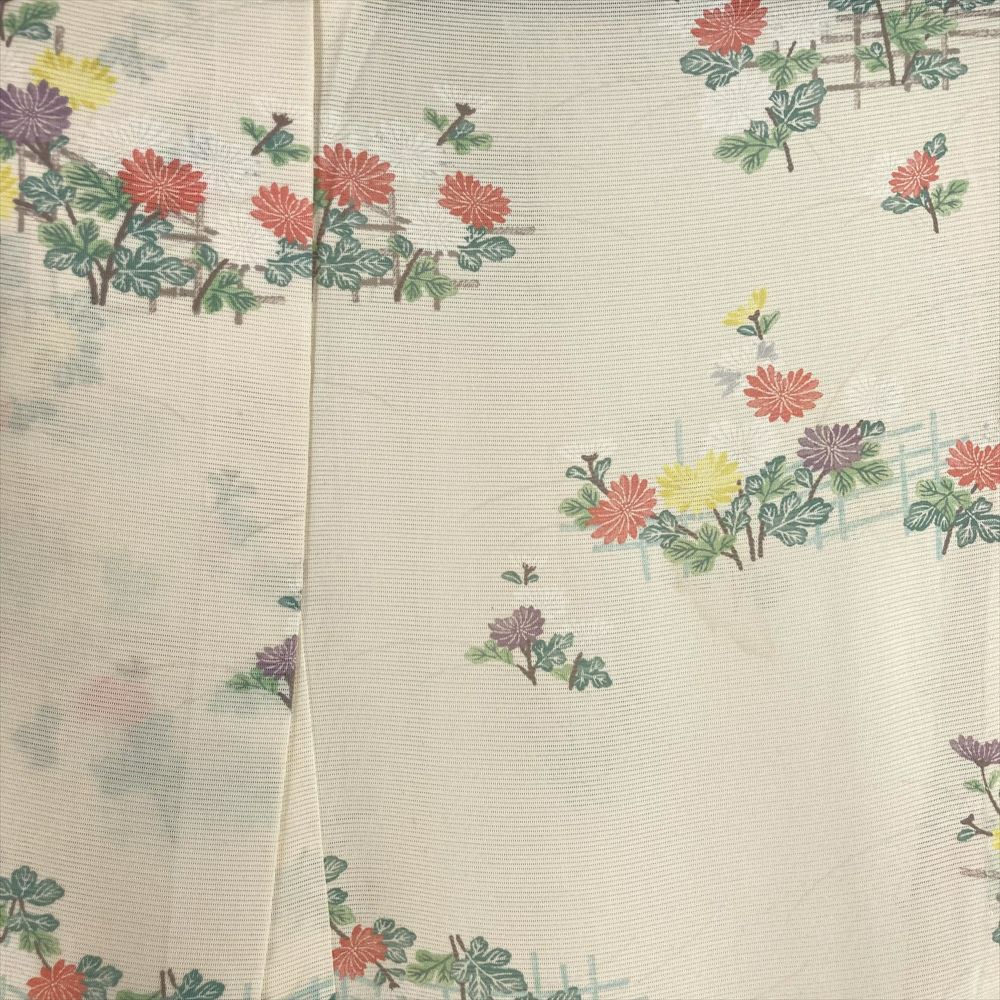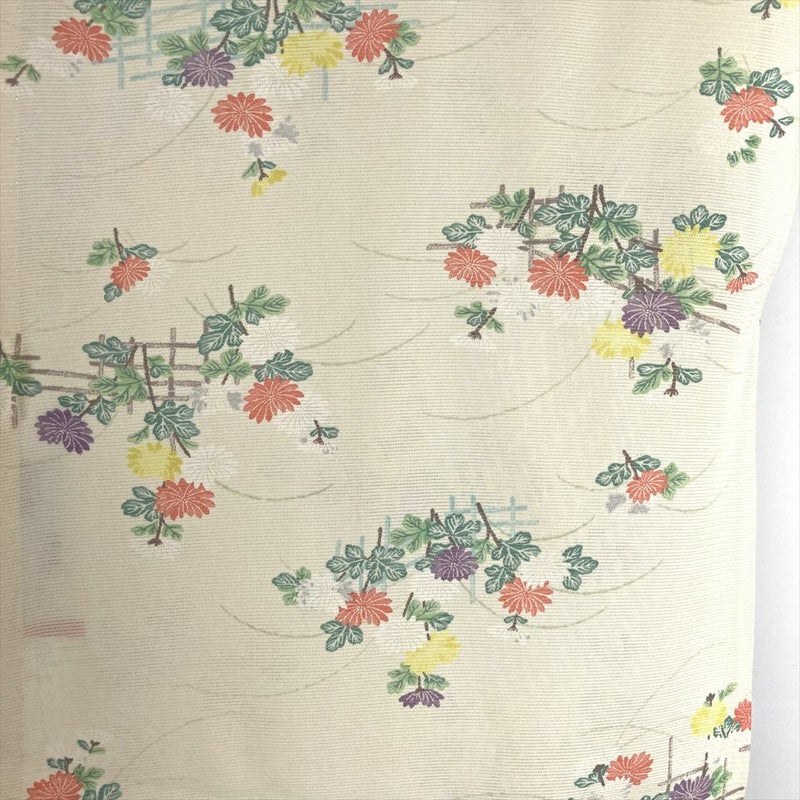 【色柄】薄黄色 カジュアル 絽 菊 垣根
