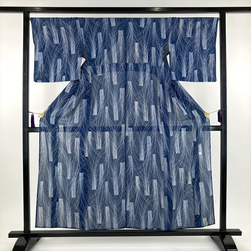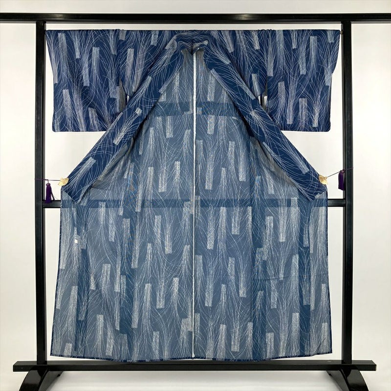 (中古) 絽小紋 藍色 カジュアル レモングラス 夏 SS【身丈】151.5cm【裄丈】68.5cm