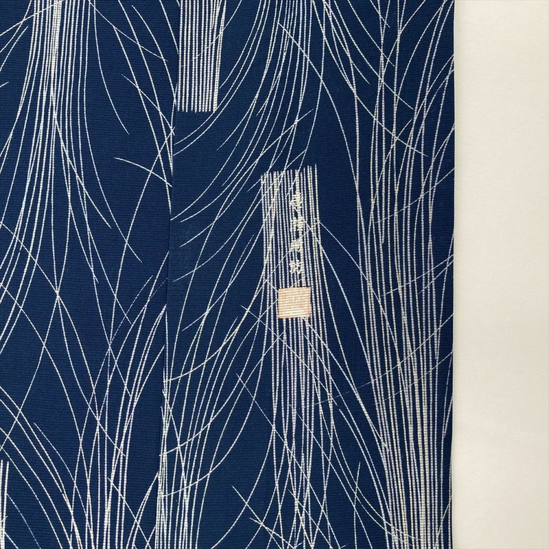 絽(ろ)は、生地に空間をつくる織技術で織られており、 生地の目が大きく開いていることから、通気性がよくて涼しいのが特徴です。 7月、8月の盛夏に着用いたします。帯は、絽や紗の名古屋帯、絽綴、絽塩瀬などでおしゃれに、 カジュアルな装いには羅や麻の帯もオススメです。全体的に使用感がございます。保存臭がややございます。右衽に落款がございます。