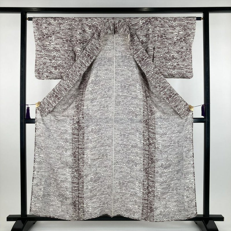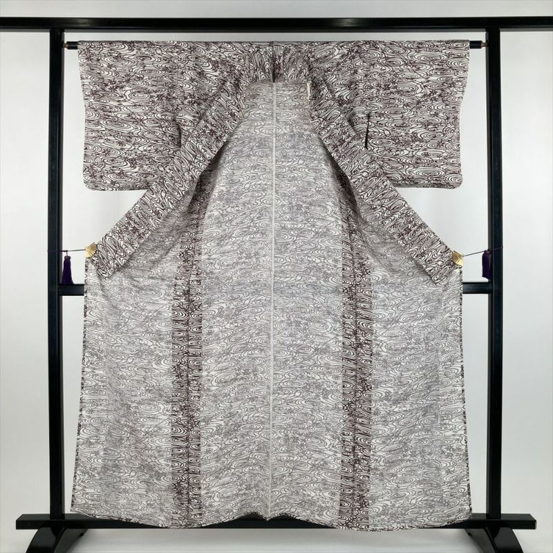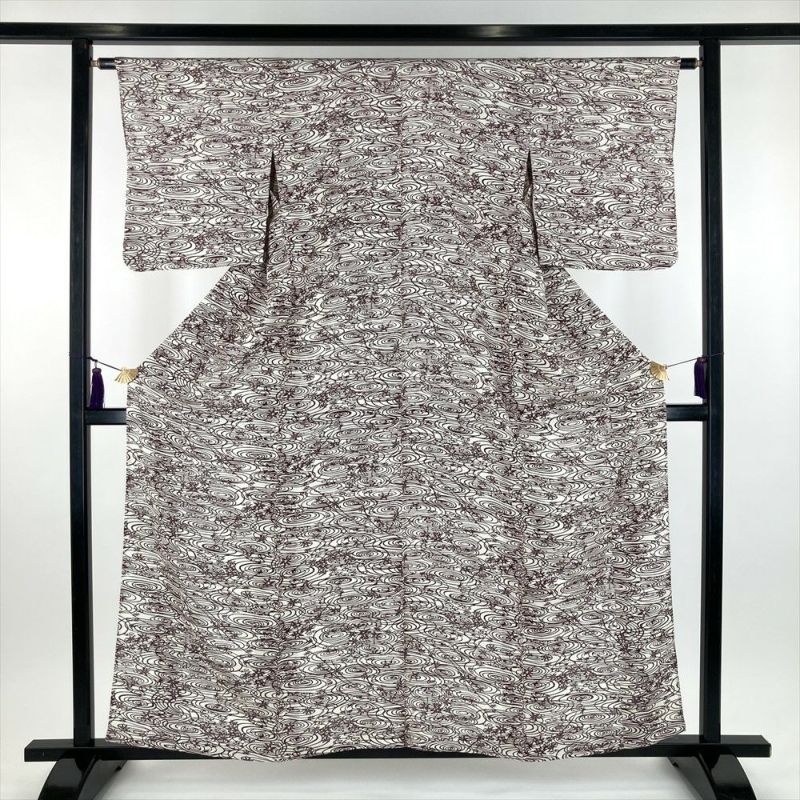 (中古) 絽小紋 生成り色 焦げ茶色 カジュアル 竜田川 紅葉 夏 S【身丈】155cm【裄丈】63.5cm