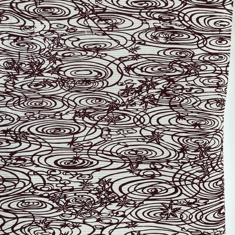 【色柄】生成り色 焦げ茶色 カジュアル 絽 竜田川 紅葉
