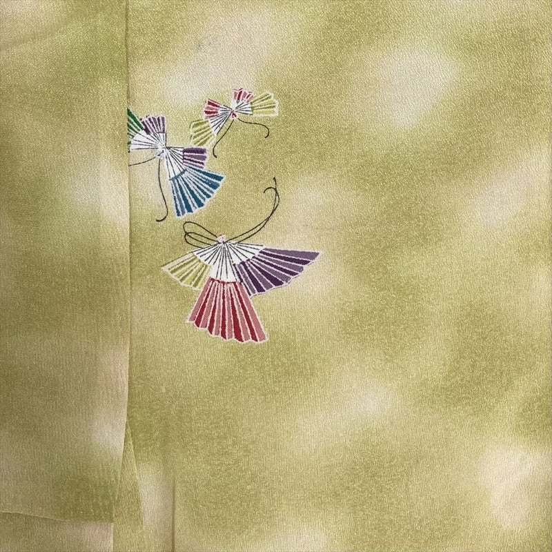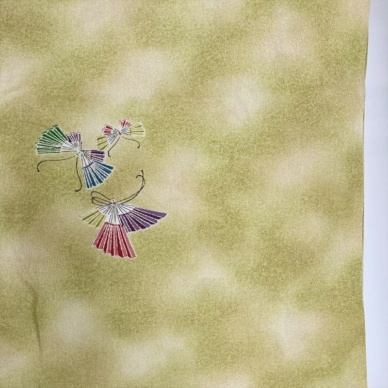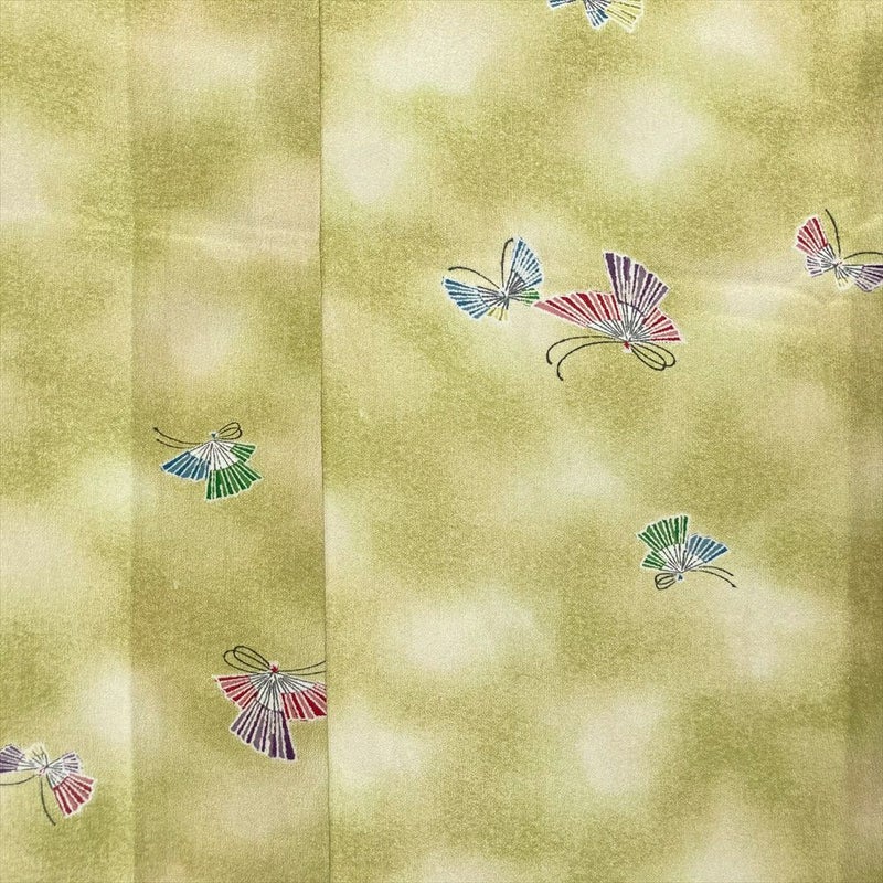 【色柄】緑 ちりめん ぼかし 蝶