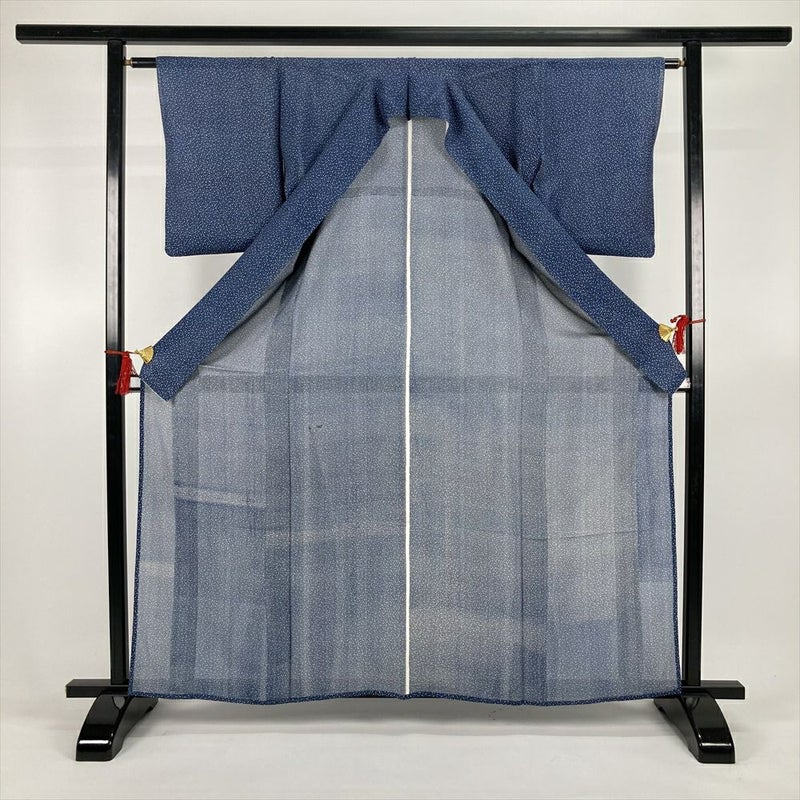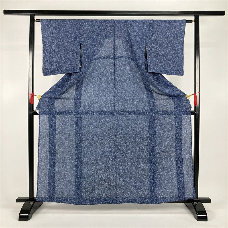 (中古)夏小紋 青 カジュアル 絽 あられ S【身丈】158cm 【裄丈】62cm