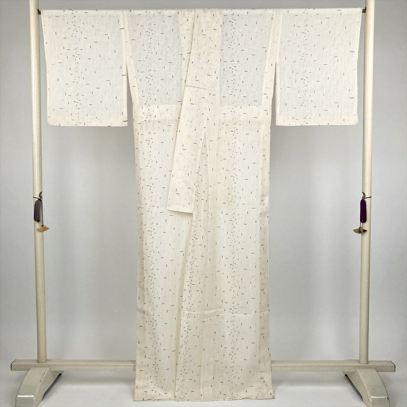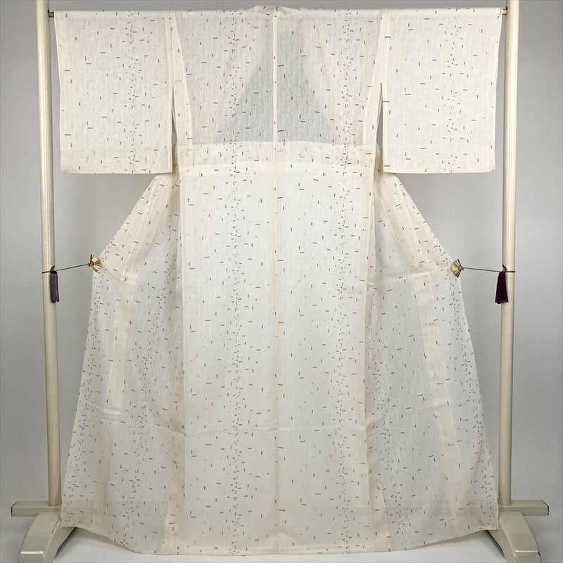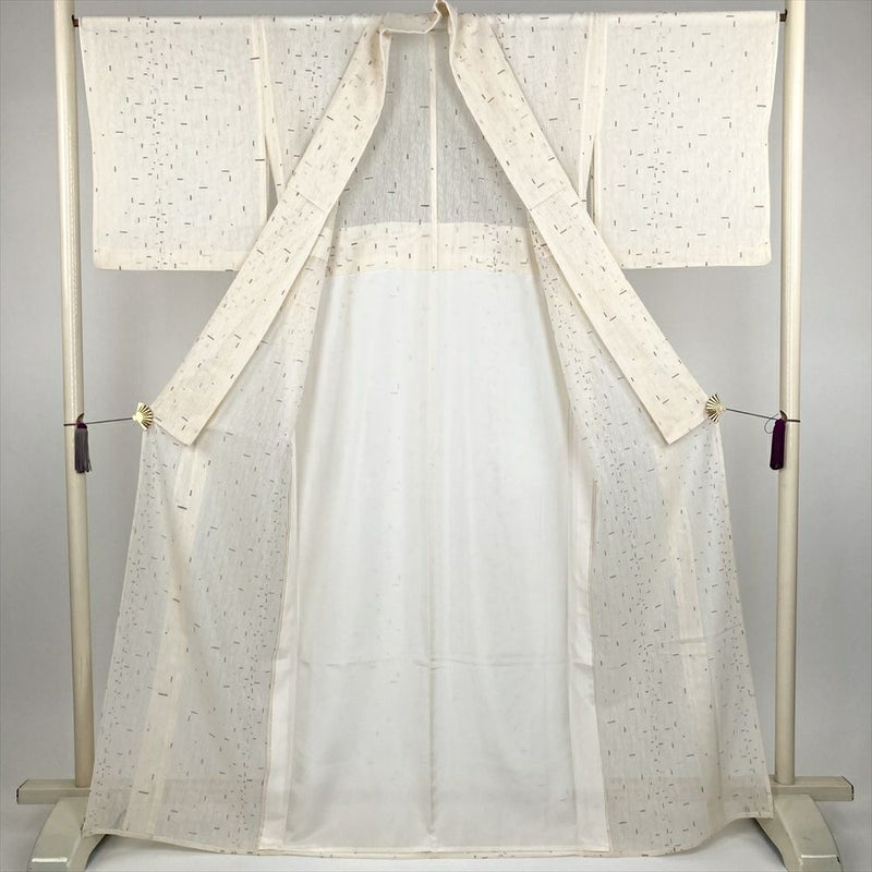 (中古) 小紋 クリーム カジュアル 紗 幾何学 夏 絹【身丈】160.5cm【裄丈】66.5cm