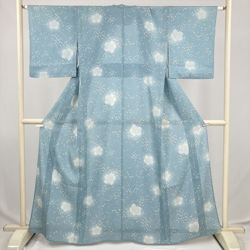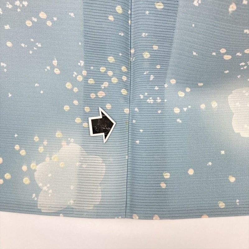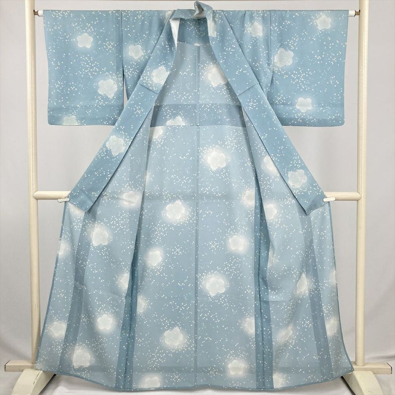 (中古) 夏小紋 水色 カジュアル 桜 水玉 夏 絹 【身丈】156.5cm【裄丈】64.5cm