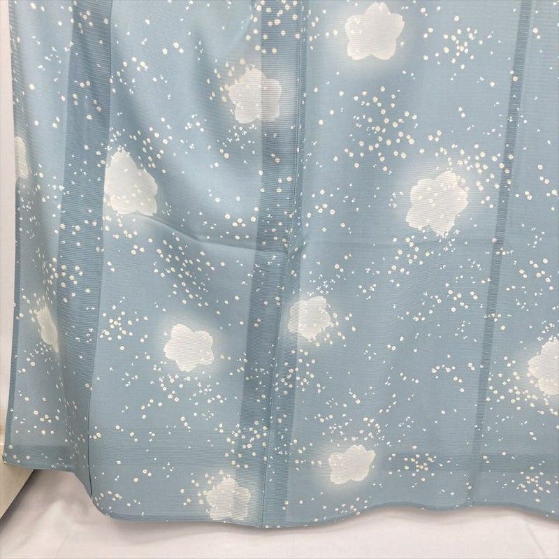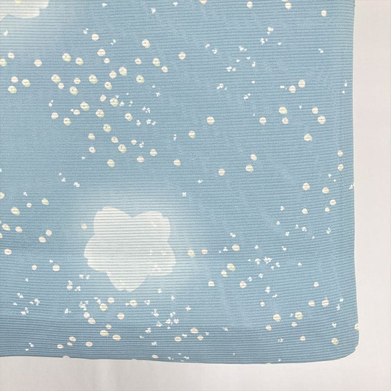 爽やかな水色地に桜と水玉をあしらった、涼やかで愛らしい夏小紋です。