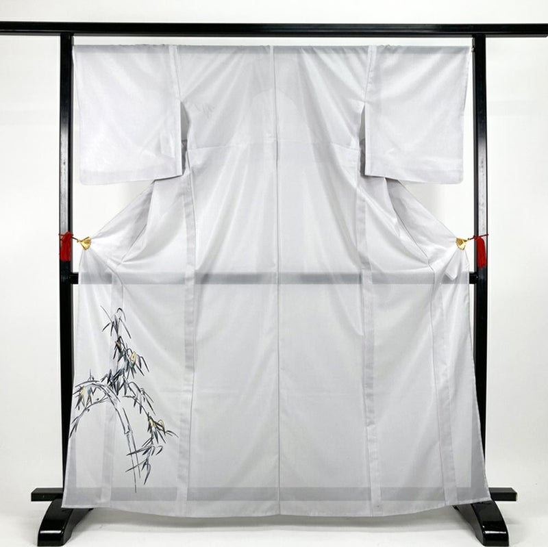 (中古)夏訪問着 グレー ポリエステル 絽 竹 笹 M【身丈】162.5cm【裄丈】69.5cm