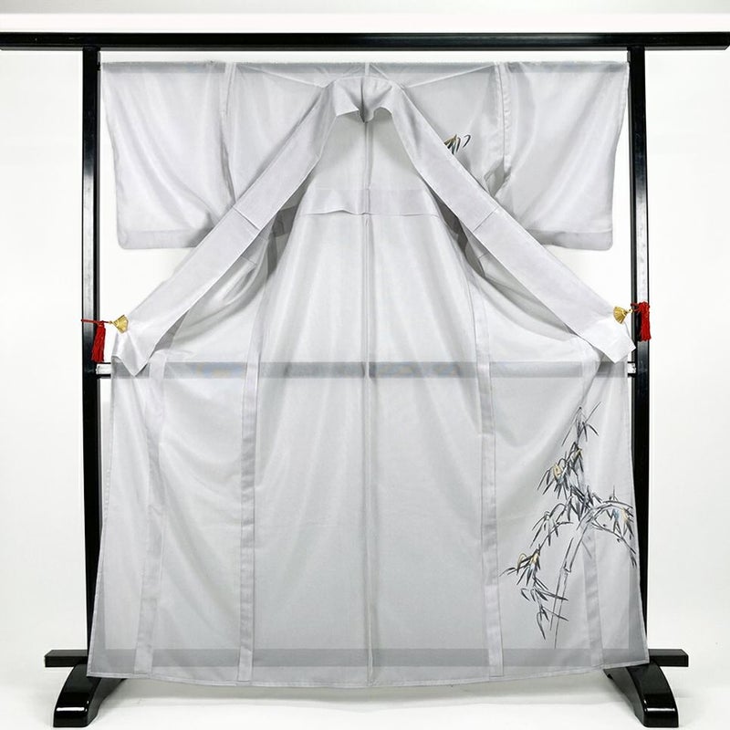 【色柄】グレー フォーマル ポリエステル 絽 竹 笹