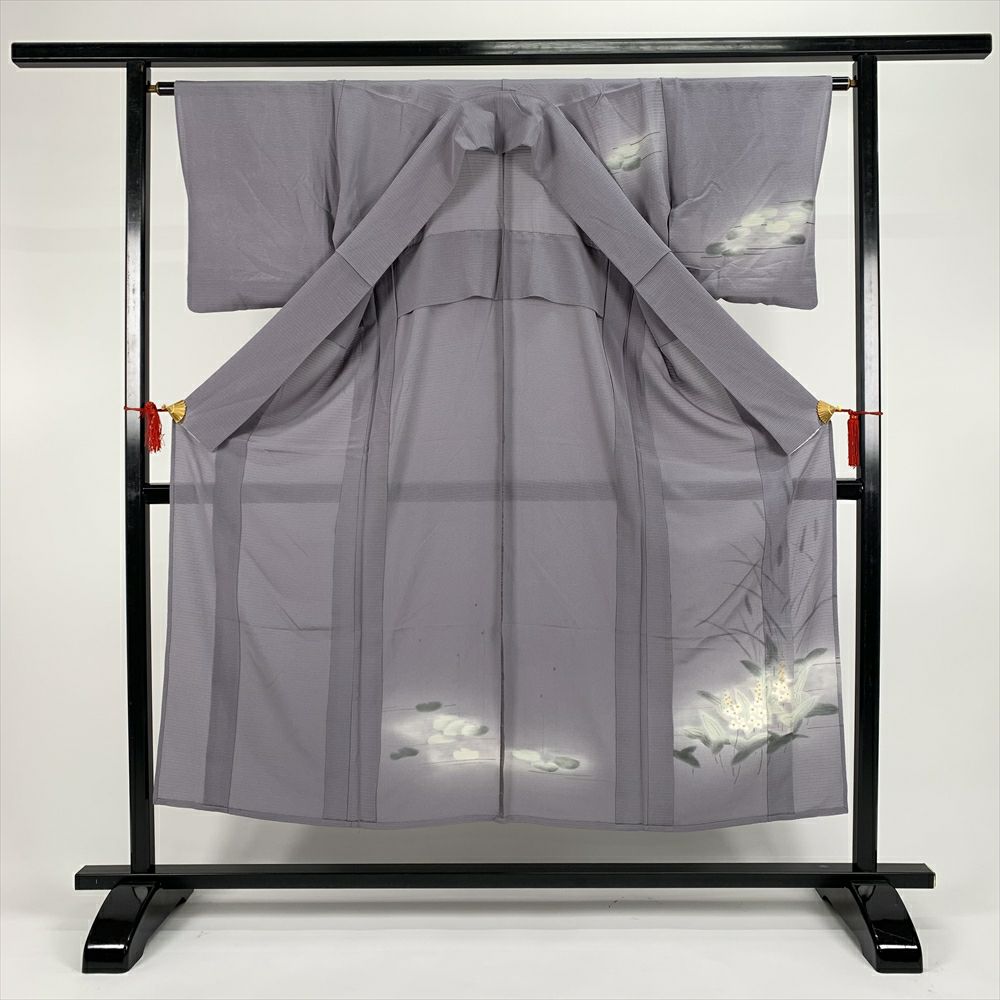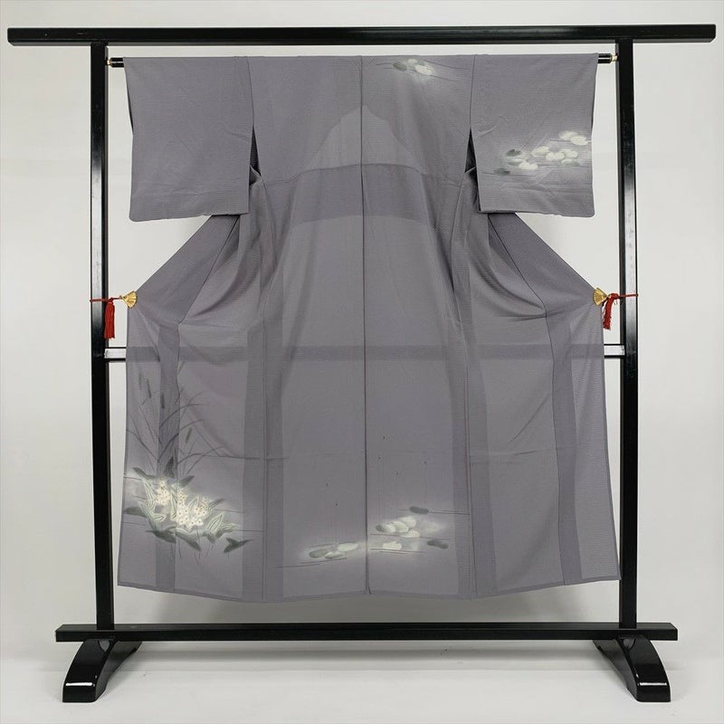(中古)夏訪問着 グレー フォーマル 水辺に草花 沢瀉 SS【身丈】147.5cm【裄丈】64.5cm