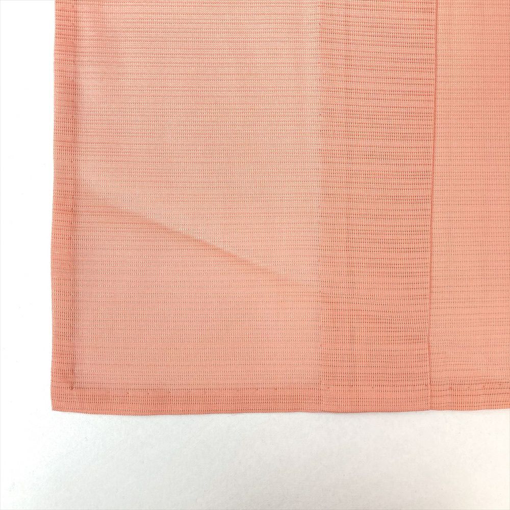 背に一つ紋があります。柔らかいサーモンピンクお色はお顔映りも良く、盛夏のお茶会などにいかがでしょうか。使用感はほとんどなく、良い状態のお品となっております。衿裏の中心と両端にシミがあります。