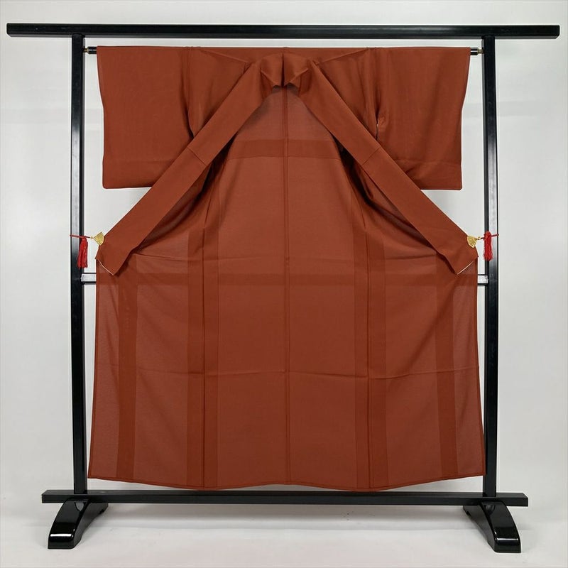 (中古)夏色無地 茶 オレンジ セミフォーマル 銀糸 一つ紋 SS【身丈】152.5cm【裄丈】65cm