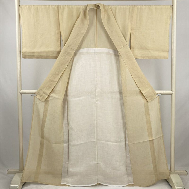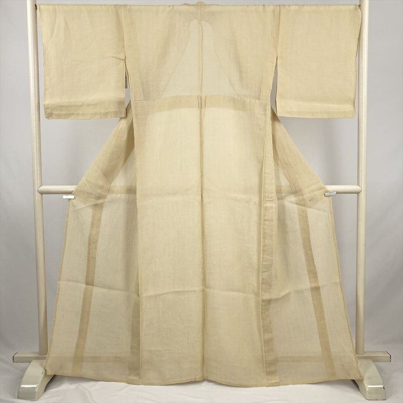 (中古) 夏紬 生成り カジュアル シャリ感 無地 夏 麻 【身丈】158cm【裄丈】70cm