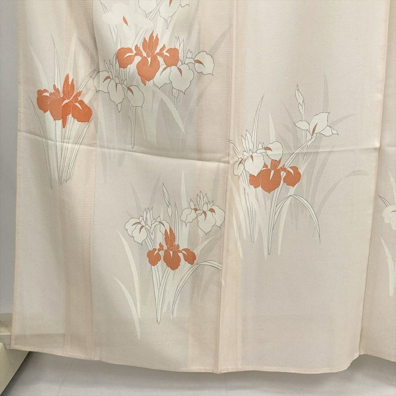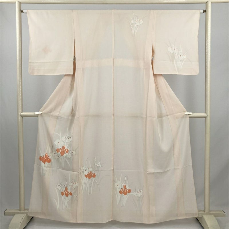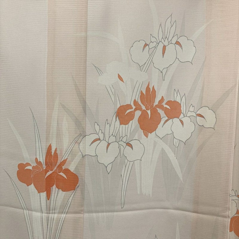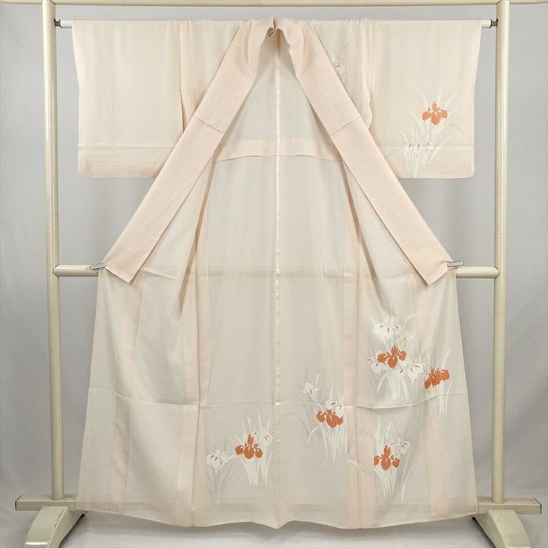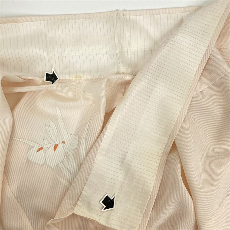 やさしいペールピンクに、すっと伸びる菖蒲の花が描かれた夏の訪問着。