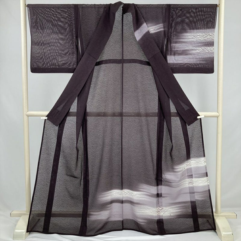 (中古) 夏訪問着 小豆 セミフォーマル 霞に露芝と萩 夏 絹 【身丈】159.5cm【裄丈】67cm