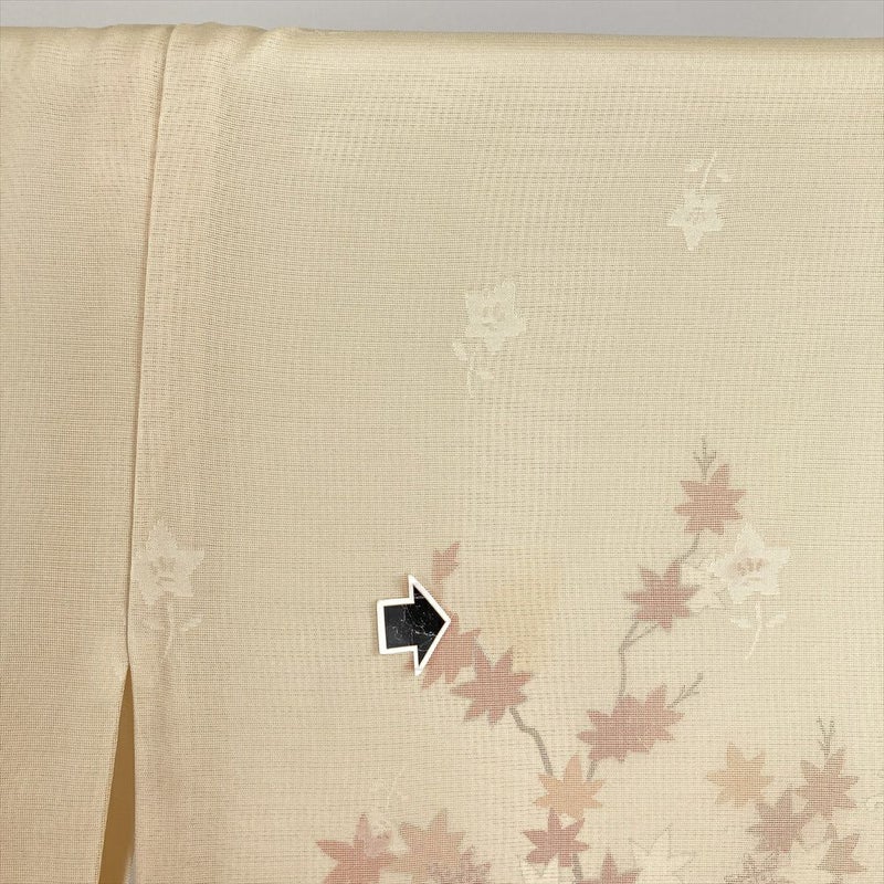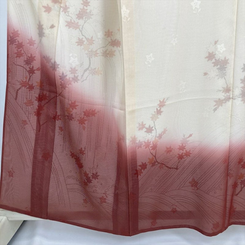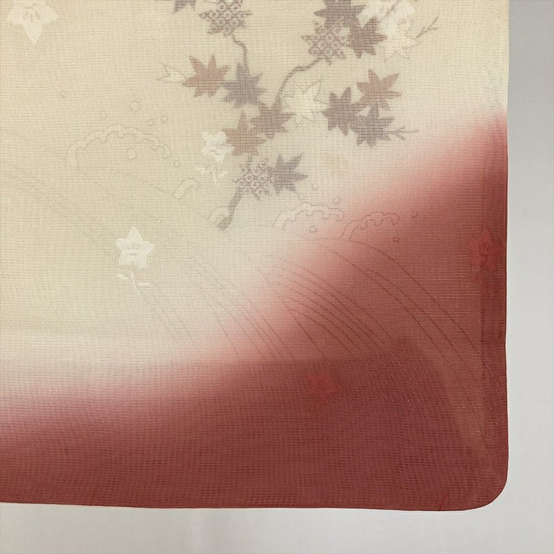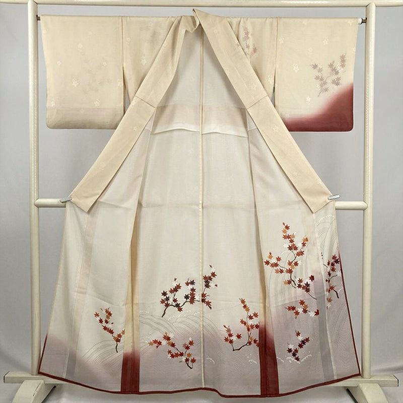 (中古) 夏訪問着 クリーム 赤 セミフォーマル 紅葉 ぼかし 夏 絹 【身丈】152cm【裄丈】66cm
