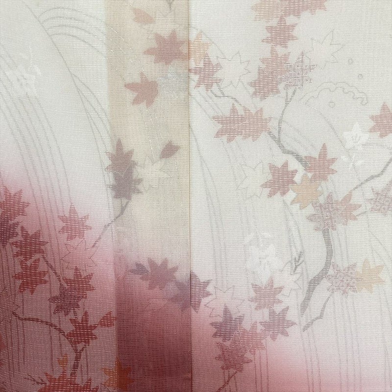 柔らかなクリーム地に赤のぼかしと紅葉柄をあしらった、華やかで涼やかな夏訪問着です。
