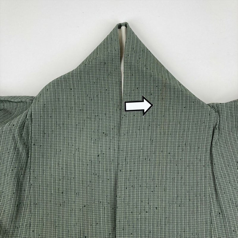 従来の決まりでいうと6月と9月、季節の変わり目に着る着物が単衣(ひとえ) 次にやってくる袷(あわせ)の前に軽やかに着られ、小物の合わせ方次第で季節を繊細に表現できます。透け感のある生地ではなく表布は袷と同じですが、裏地が付いておらず一枚で仕立ててあるのが特徴です。衿汚れがございます。保存臭がややございます。たたみシワなど若干の使用感がございます。