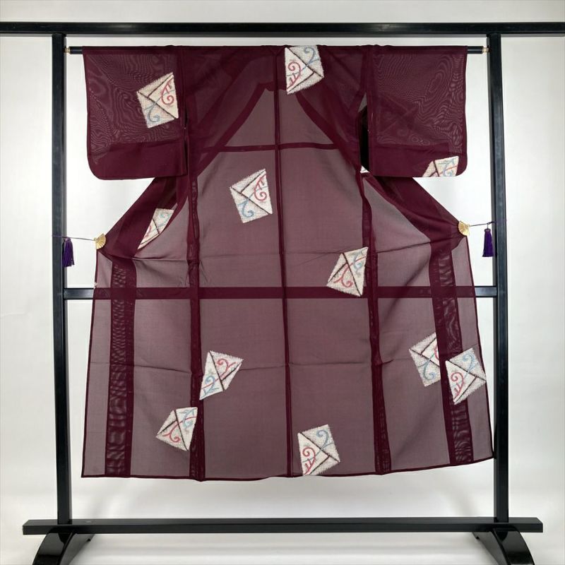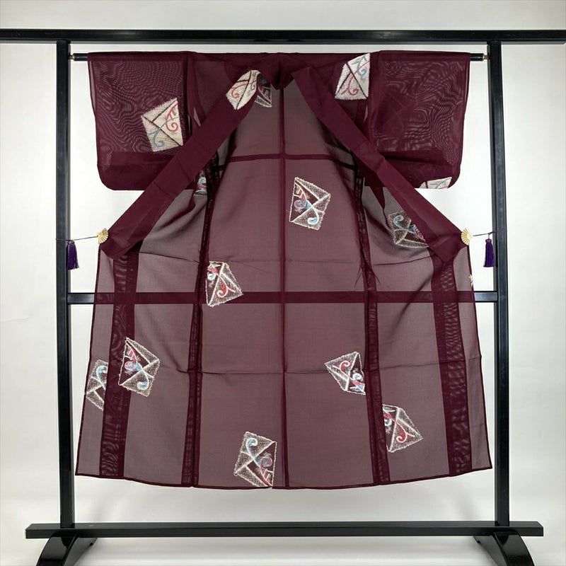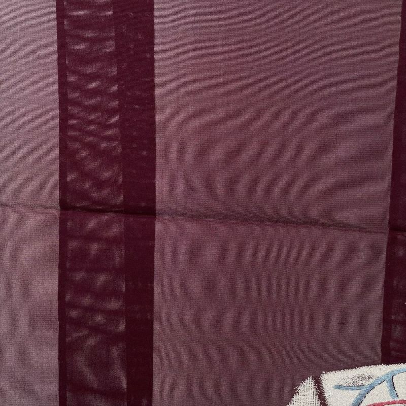 夏紬は、通気性があり軽やかです、絽や紗のようにラインを拾いすぎず、麻のようにシワになりにくく、蒸し暑い時期に適した快適な着心地です。夏のカジュアルシーンに活躍いたします、デザイン性も高いものが多いので、お気に入りの1枚にぜひ加えていただきたく存じます。衿裏に継ぎと汚れがございます。袖丈が調整してあります。保存臭がややございます。