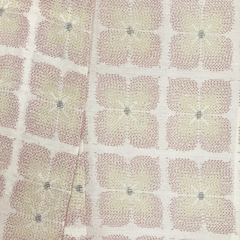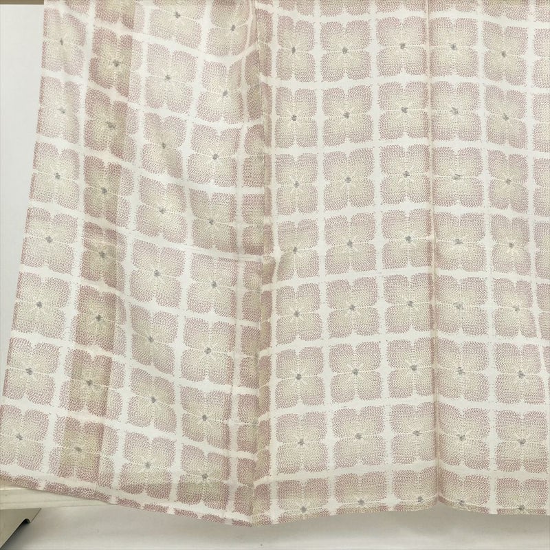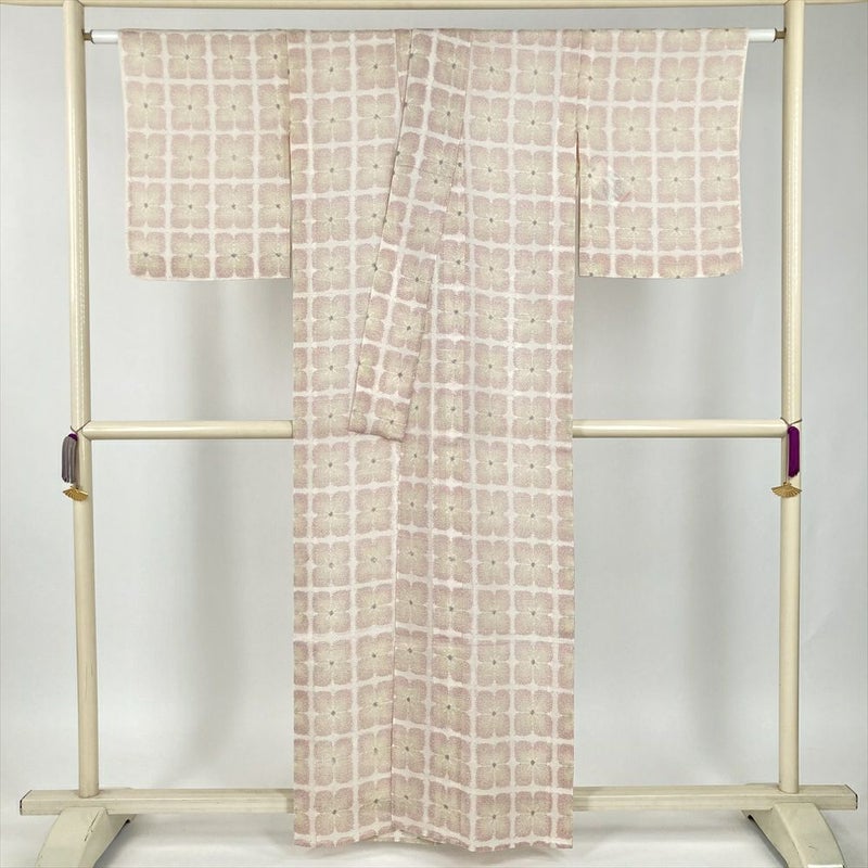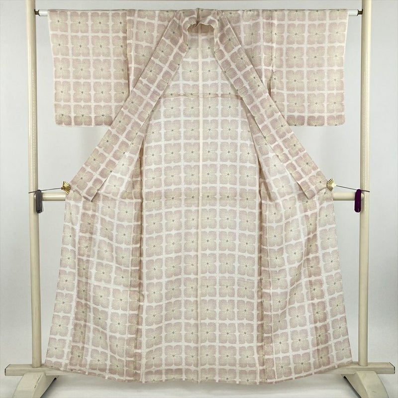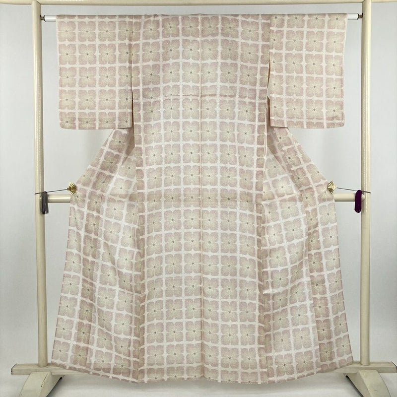 (中古) 紬 生成り カジュアル 花柄 夏 絹【身丈】154cm【裄丈】62.5cm