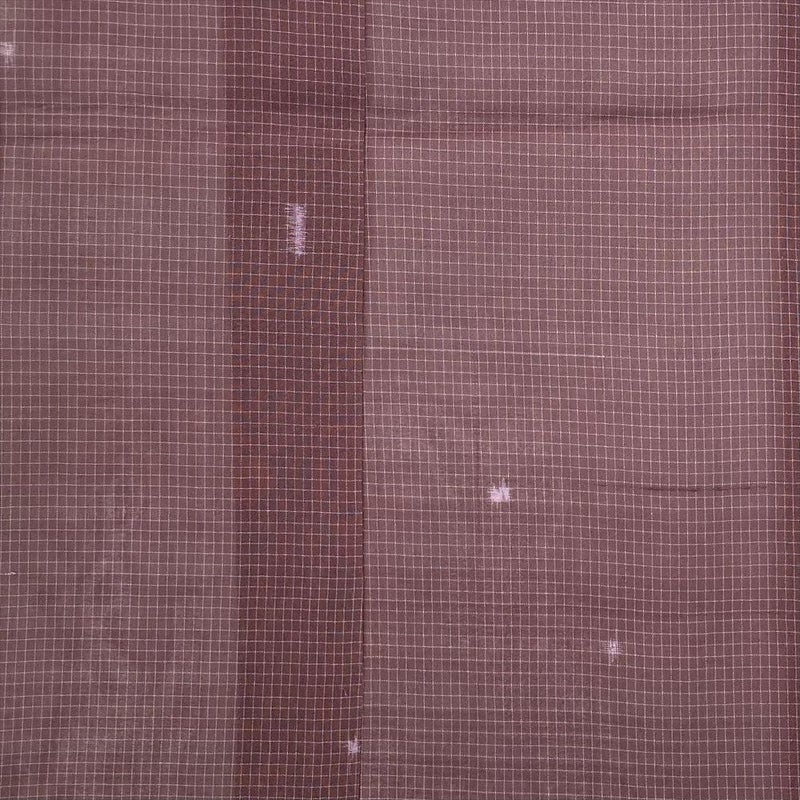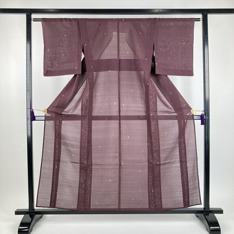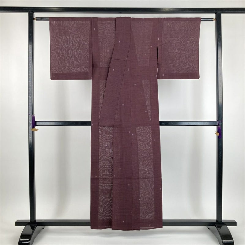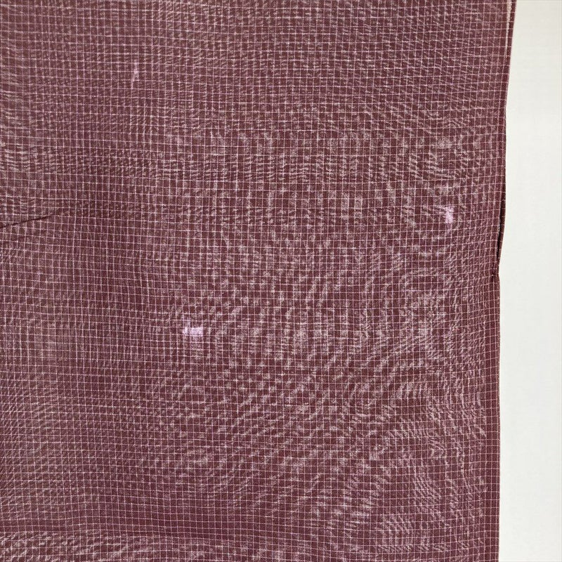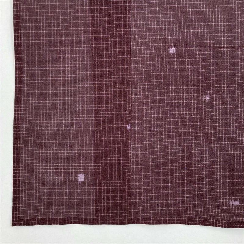 (中古)夏紬 小豆色 紫 カジュアル 絣 みじん格子 SS【身丈】153.5cm【裄丈】62cm