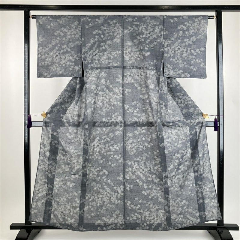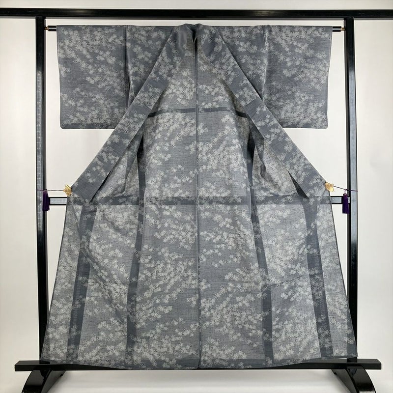 (中古) 夏紬 灰青色 グレー カジュアル 紅葉 SS 【身丈】154cm【裄丈】63cm