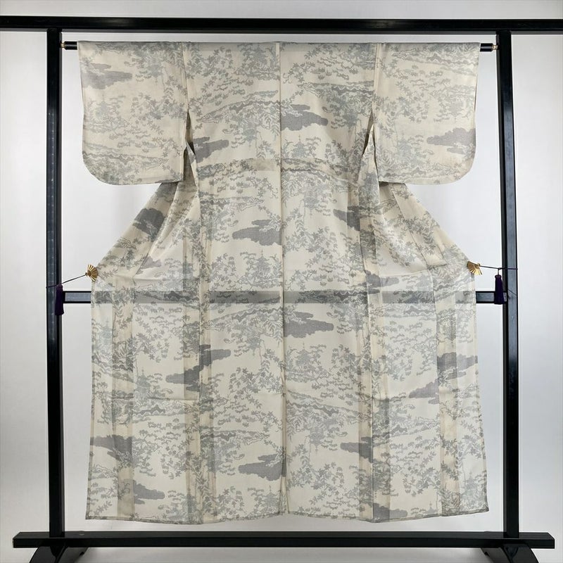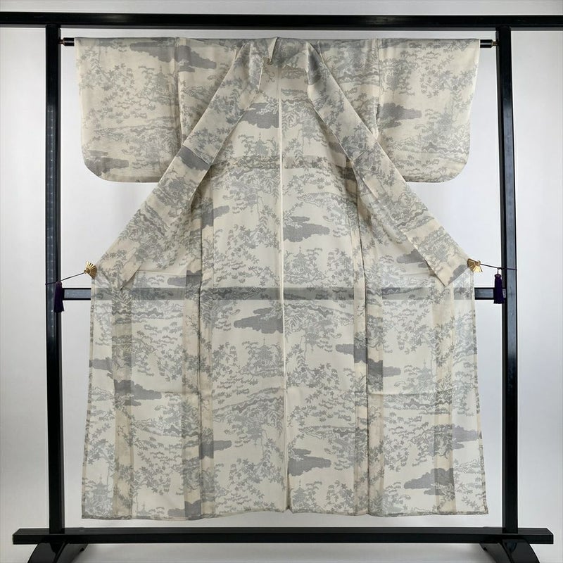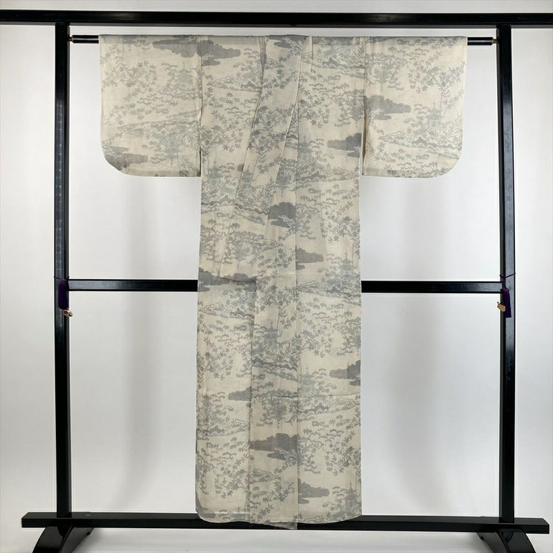(中古) 夏紬 生成り色 カジュアル 古都の風景 寺社 紅葉 SS 【身丈】145cm【裄丈】63cm