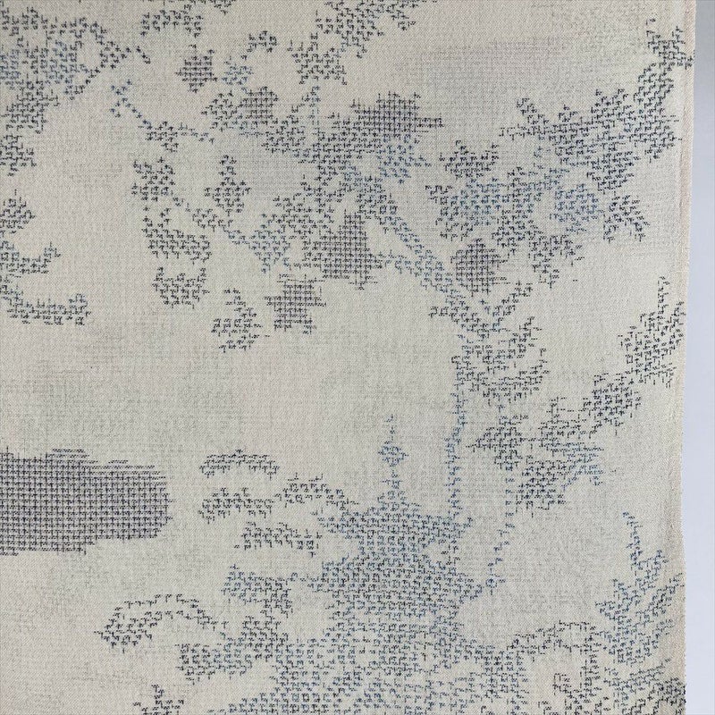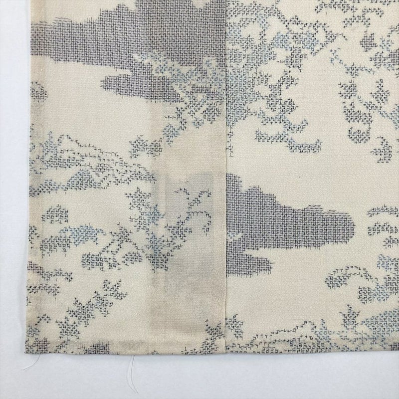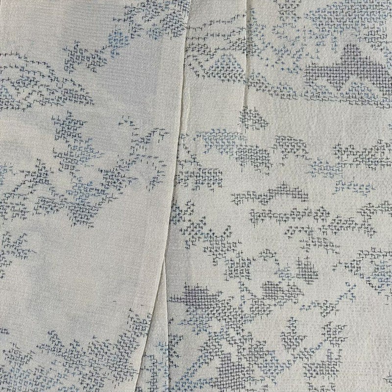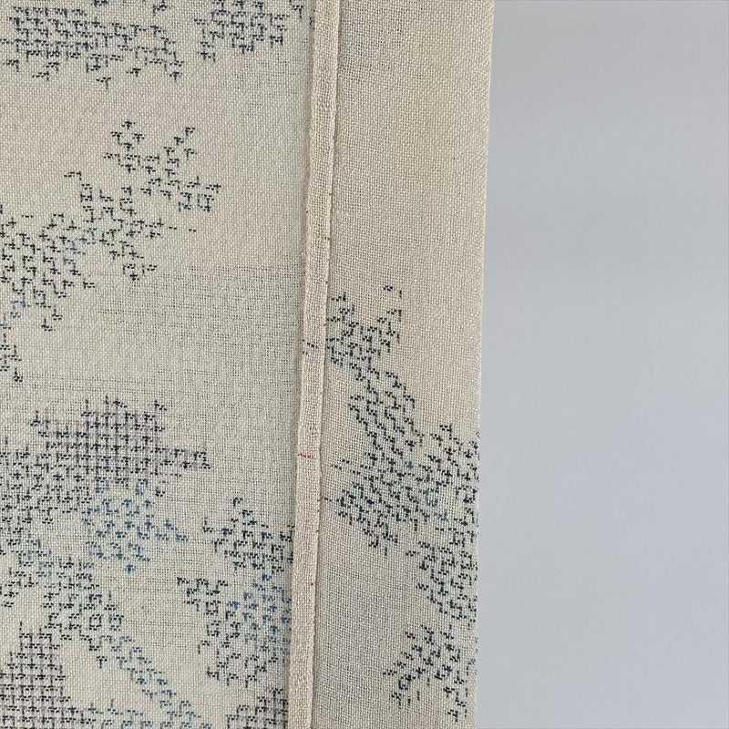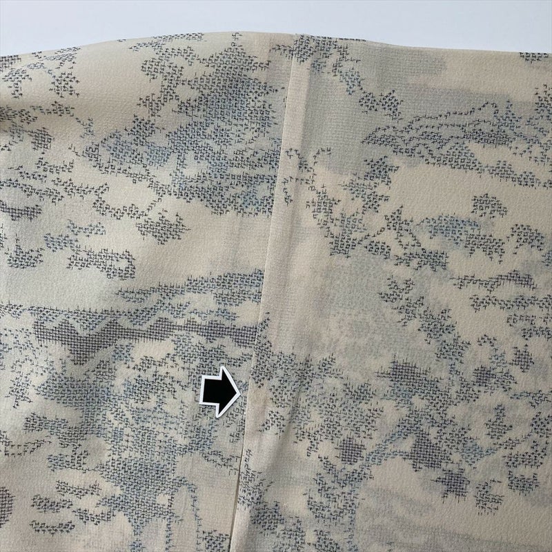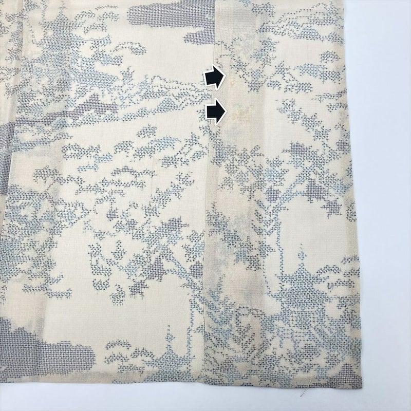 夏紬は、通気性があり軽やかです、絽や紗のようにラインを拾いすぎず、麻のようにシワになりにくく、蒸し暑い時期に適した快適な着心地です。夏のカジュアルシーンに活躍いたします、デザイン性も高いものが多いので、お気に入りの1枚にぜひ加えていただきたく存じます。衿裏に穴がございます右後袖、右衽、上前に茶色い汚れがございます。保存臭がややございます。
