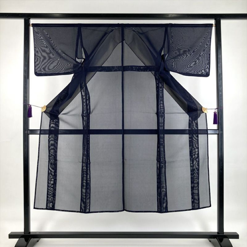(中古) 夏紬 紺色 カジュアル 無地感 SS【身丈】139.5cm【裄丈】66.5cm
