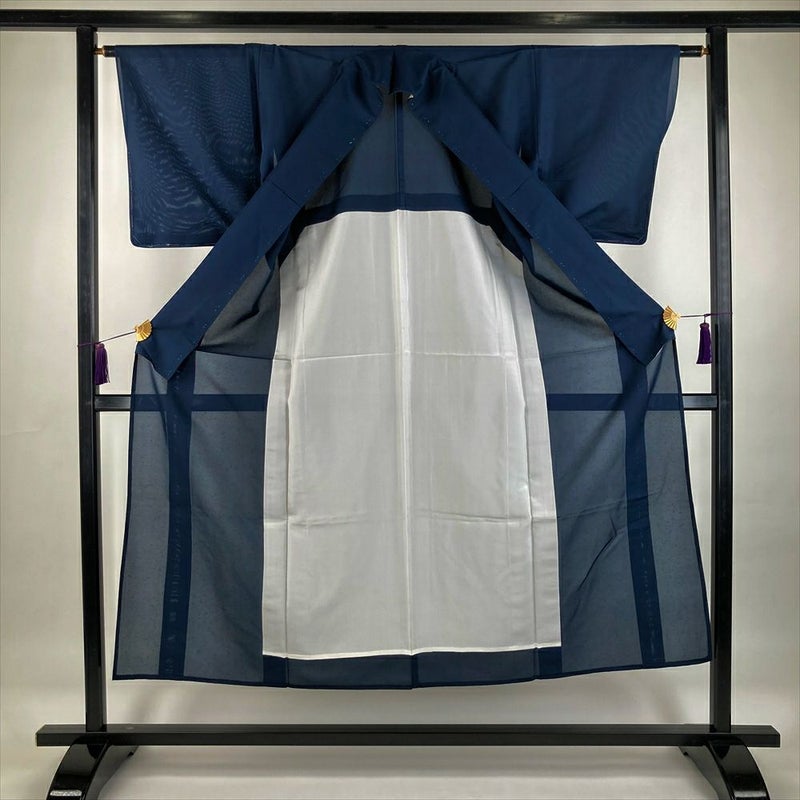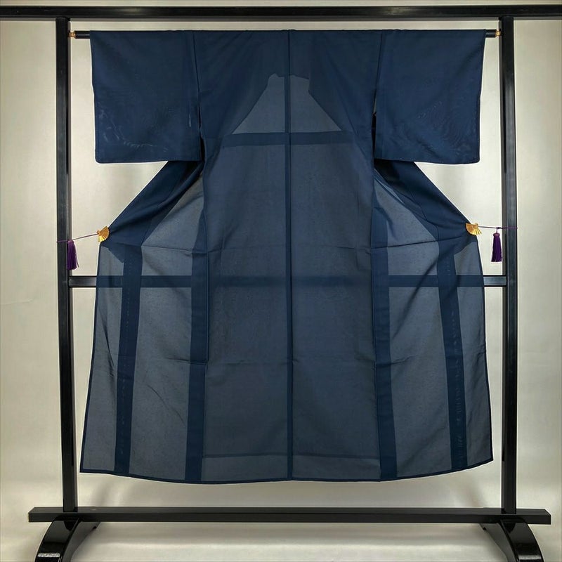 (中古) 夏紬 鉄紺色 カジュアル 節夏紬 無地感 SS【身丈】144.5cm【裄丈】62.5cm
