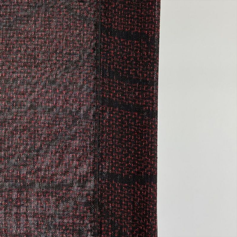 (中古) 夏紬 赤色 黒色 カジュアル 絣 蔓 抽象柄 SS 【身丈】147cm【裄丈】66cm