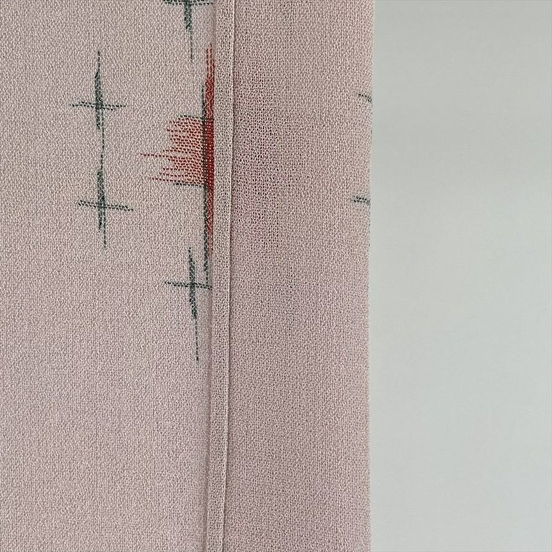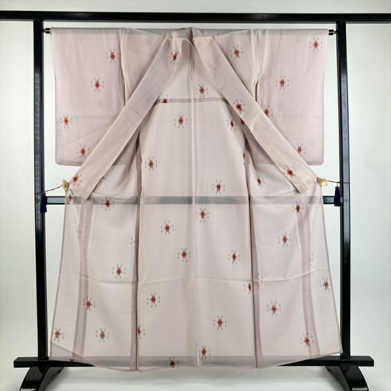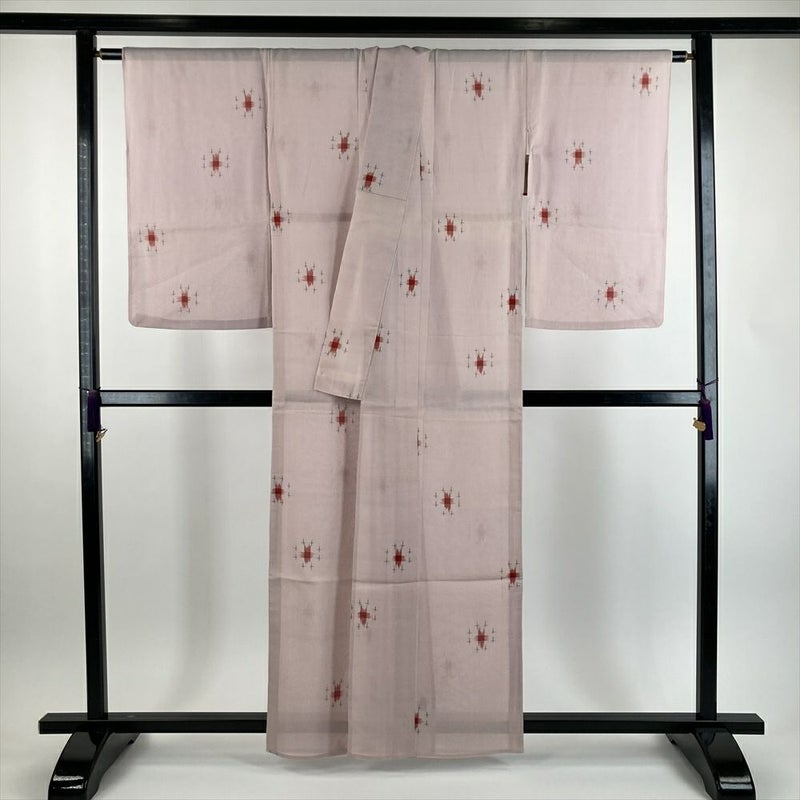 (中古) 夏紬 灰ピンク色 カジュアル 十字絣調 SS 【身丈】154cm【裄丈】64.5cm