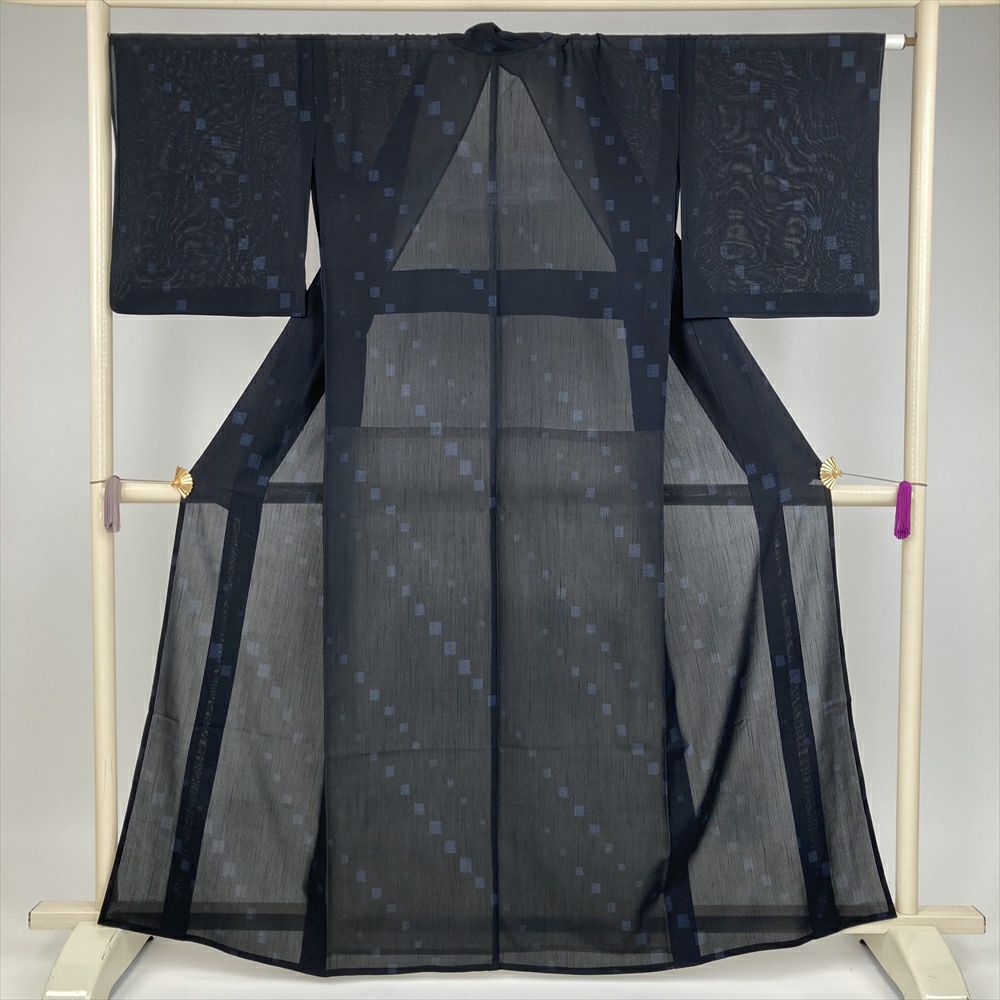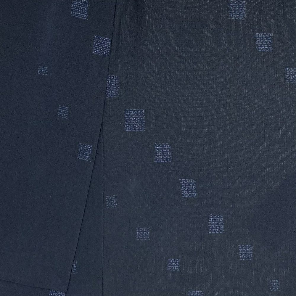 (中古) 夏紬 鉄紺 カジュアル 四角に亀甲 夏 絹【身丈】155cm【裄丈】66.5cm