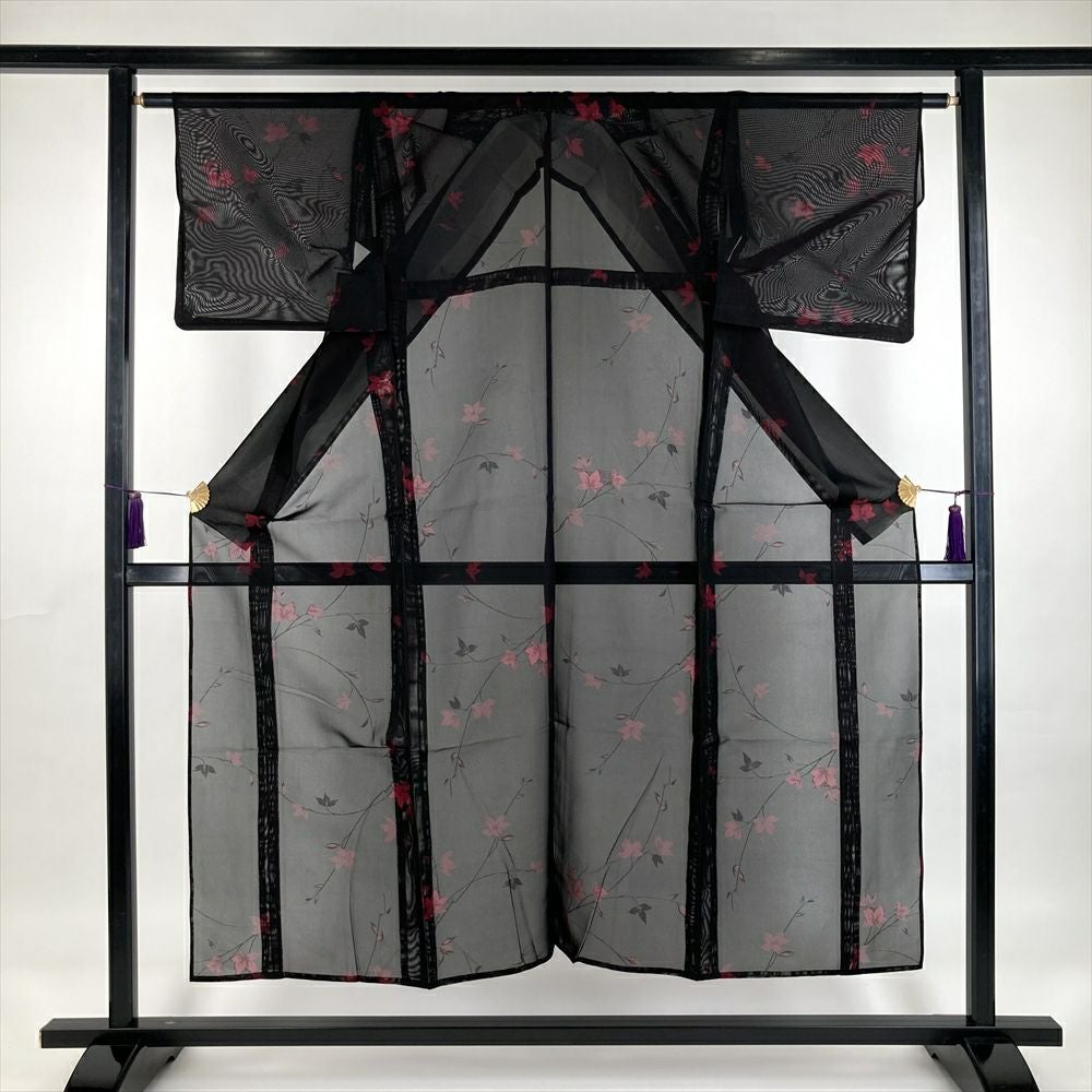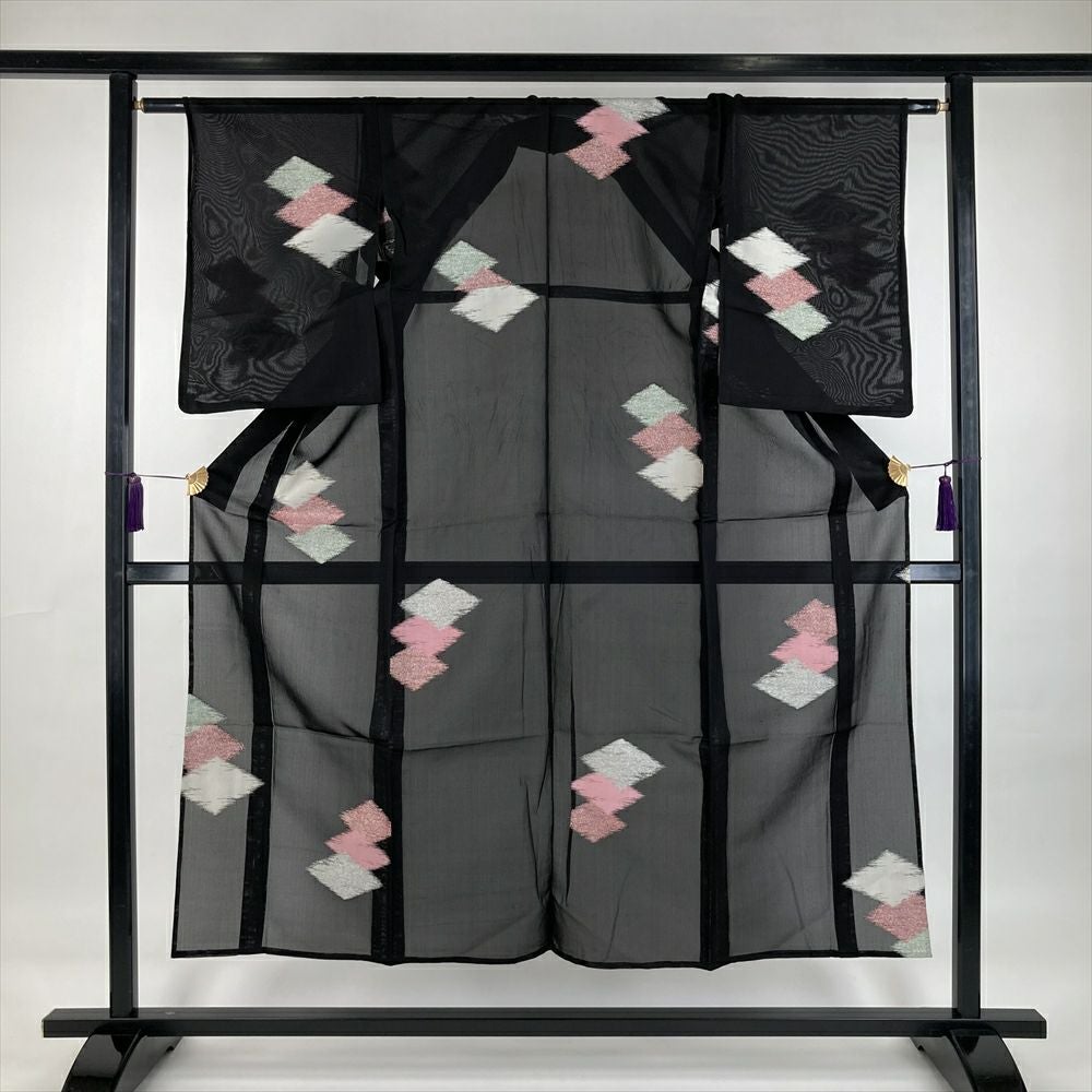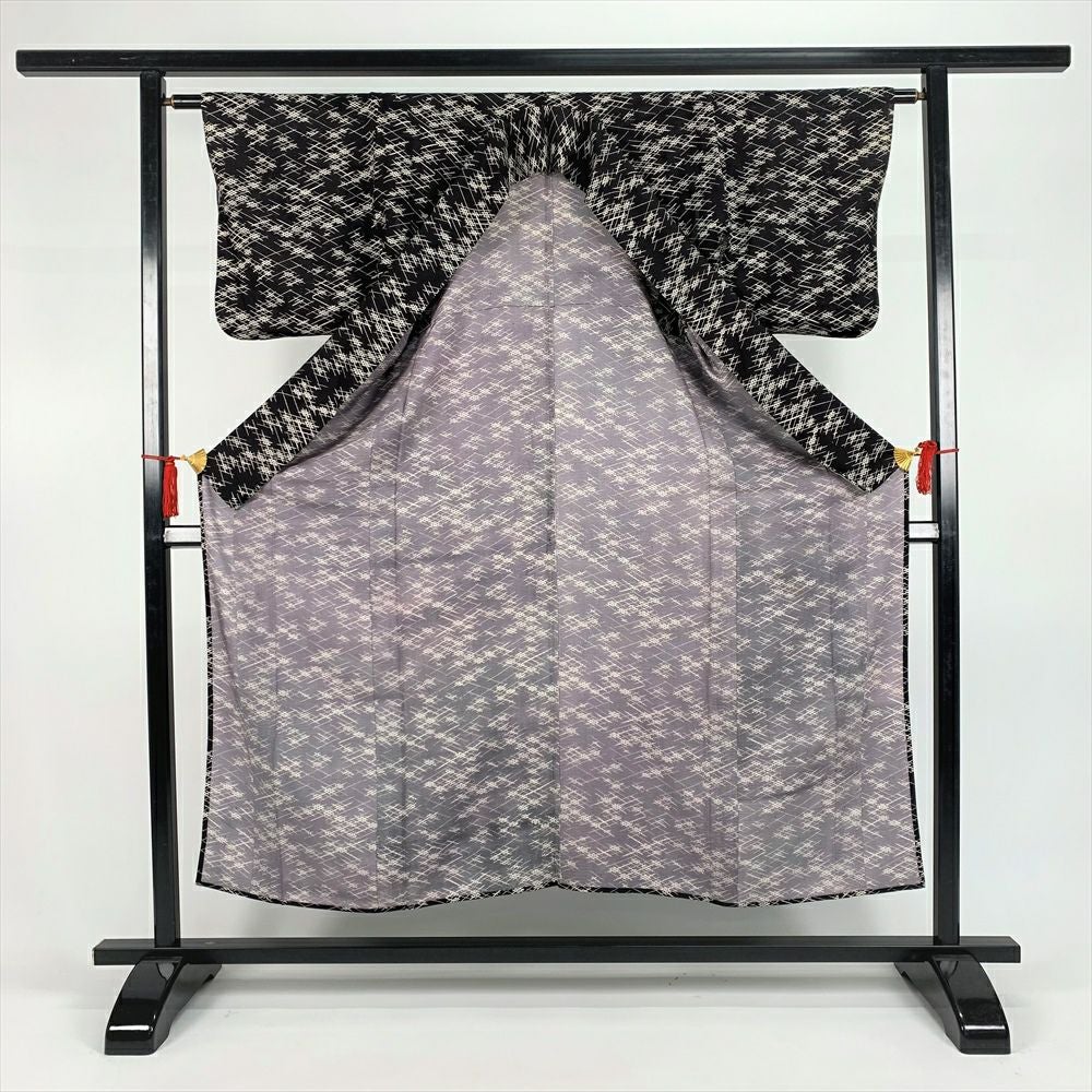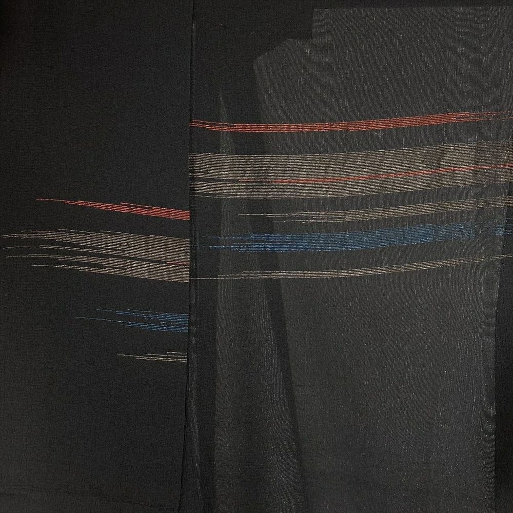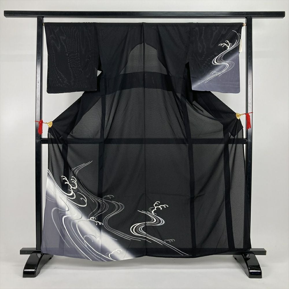 他の画像を見る (中古)夏訪問着 黒 フォーマル 絽 流水 波頭 銀彩 グリッター ぼかし染め S【身丈】158.5cm【裄丈】67.5cm 状態ランクS ¥ 110,000 税込 お気に入りに登録する