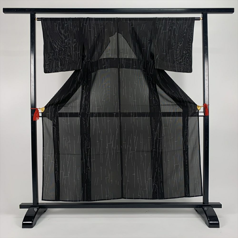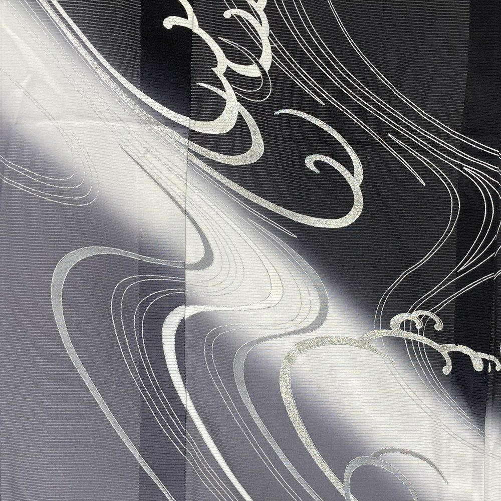 他の画像を見る (中古)夏訪問着 黒 フォーマル 絽 流水 波頭 銀彩 グリッター ぼかし染め S【身丈】158.5cm【裄丈】67.5cm 状態ランクS ¥ 110,000 税込 お気に入りに登録する