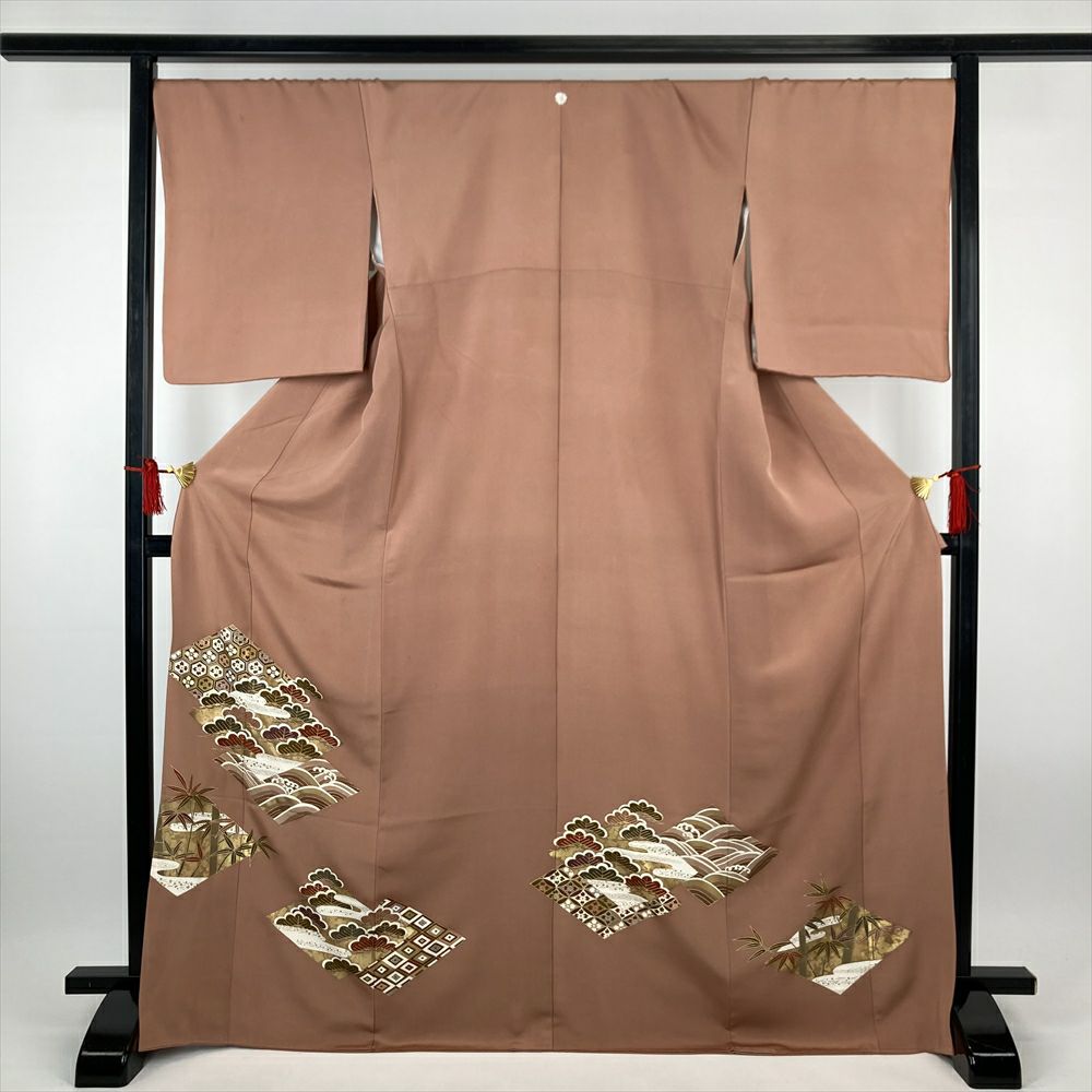 他の画像を見る (中古)色留袖 ベージュ フォーマル 金糸 地紋織り 総刺繍 金駒刺繍 疋田柄刺繍 スワトウ刺繍 五つ紋 袷 SS【身丈】148.5cm【裄丈】64cm ¥ 33,000 税込 お気に入りに登録する