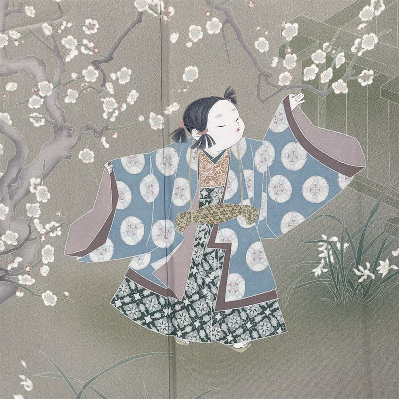 初代由水十久は、日本の近代を代表する京友禅作家の一人です。彼の作品は、伝統的な京友禅の技法と現代的な感覚が見事に融合されており、特に人物画、中でも唐子を題材とした作品で知られています。